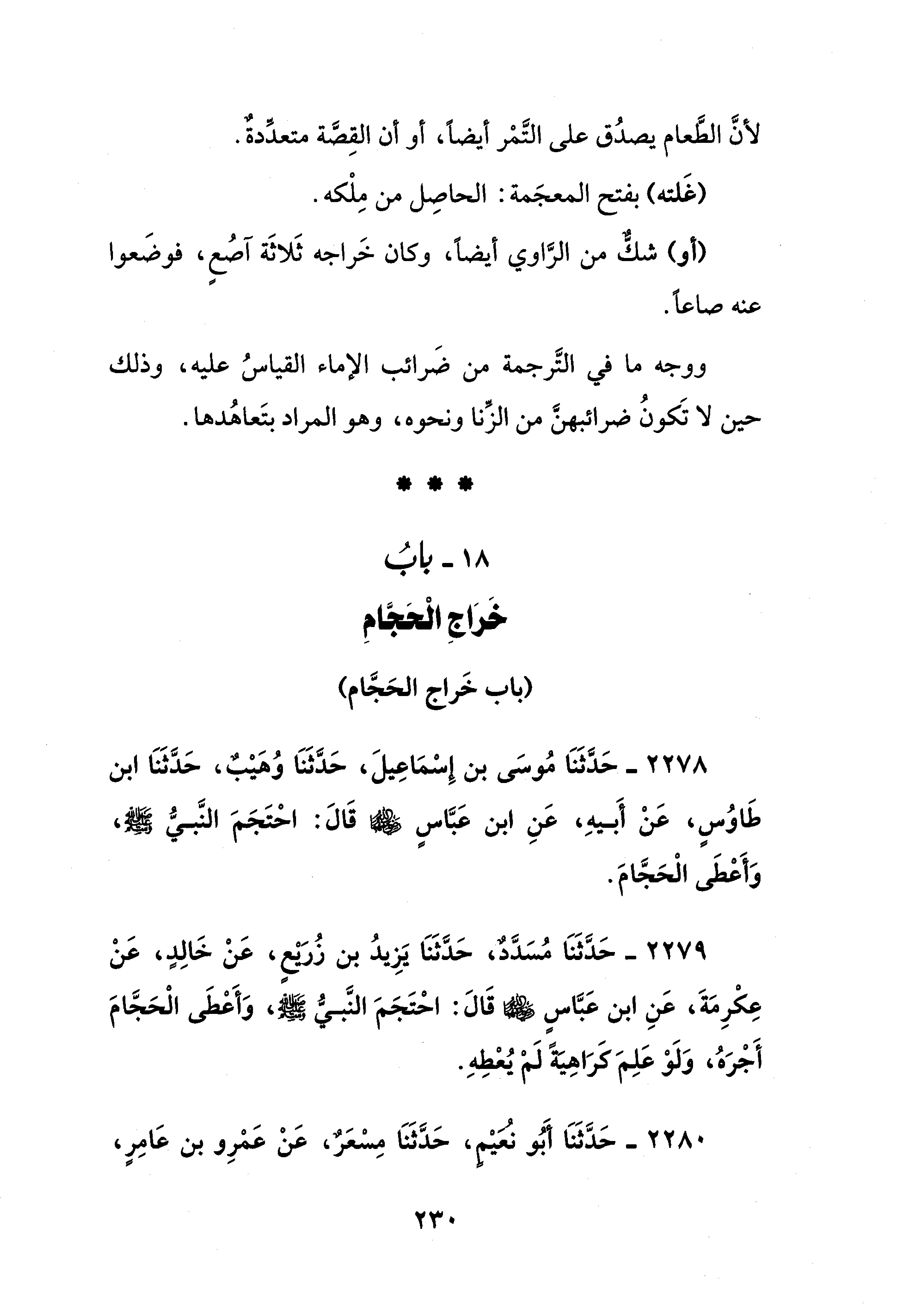 2278 - حَدَّثَنَا مُوسَى بن إِسْمَاعِيلَ، حَدَّثَنَا وُهَيْبٌ، حَدَّثَنَا ابن طَاوُسٍ، عَنْ أَبيهِ، عَنِ ابن عَبَّاسٍ - رضي الله عنهما - قَالَ: احْتَجَمَ النَّبيُّ - صلى الله عليه وسلم -، وَأَعْطَى الْحَجَّامَ.