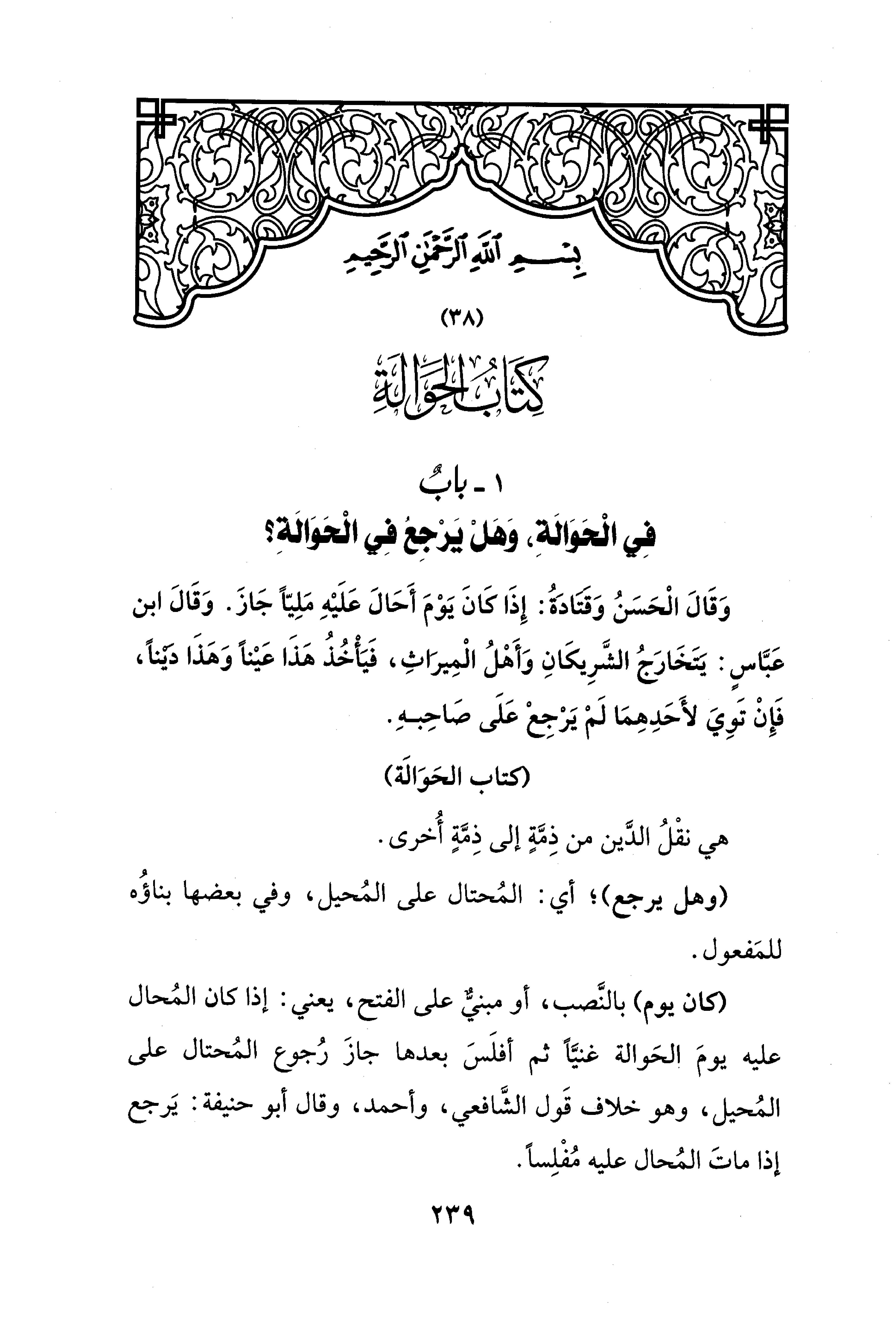 (كان يوم) بالنَّصب، أو مبنيٌّ على الفتح، يعني: إذا كان المُحال عليه يومَ الحَوالة غنيًّا ثم أفلَسَ بعدها جازَ رُجوع المُحتال على المُحيل، وهو خلاف قَول الشَّافعي، وأحمد، وقال أبو حنيفة: يَرجع إذا ماتَ المُحال عليه مُفْلِسًا.