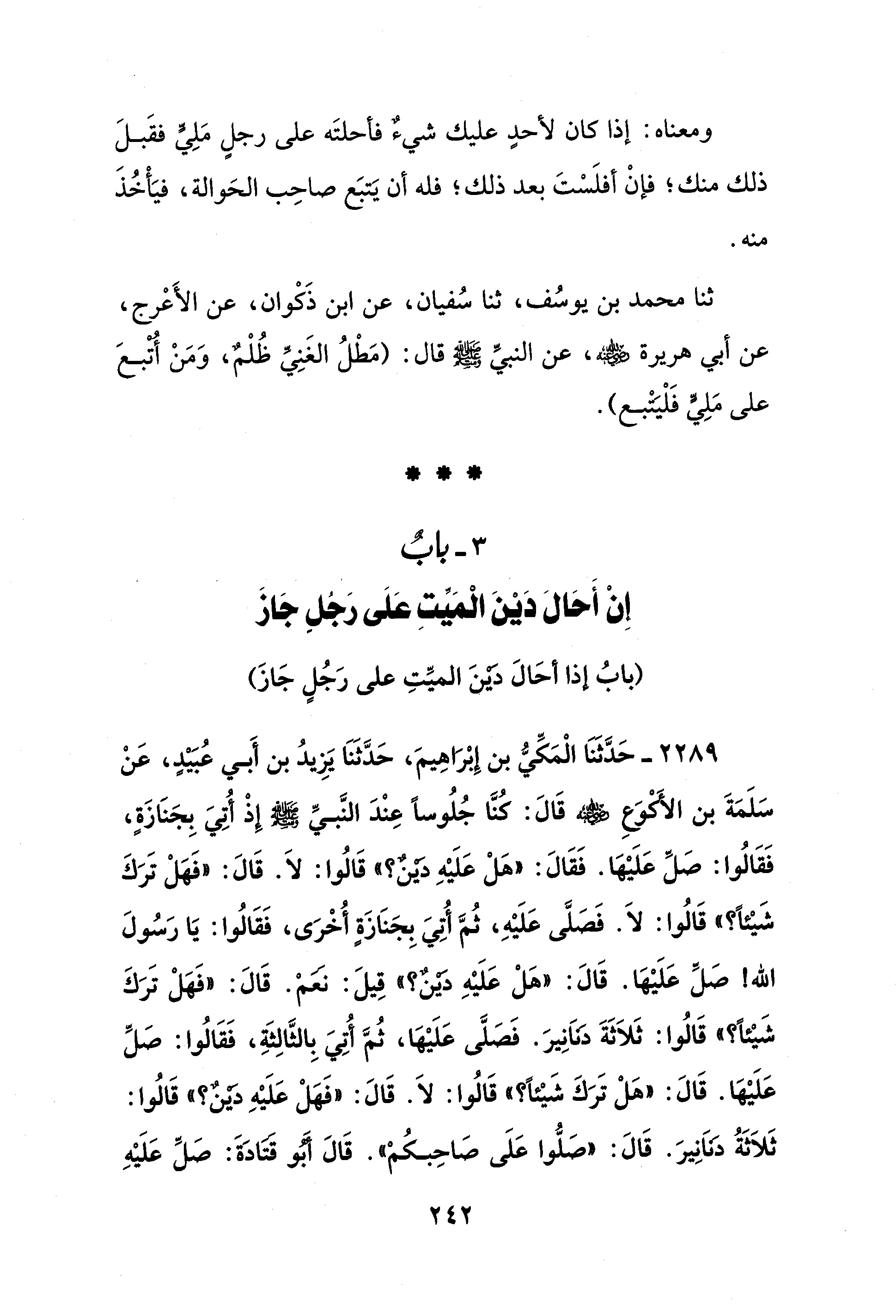 3 - بابٌ وَإِنْ أَحَالَ دَيْنَ الْمَيِّتِ عَلَى رَجُلٍ جَازَ