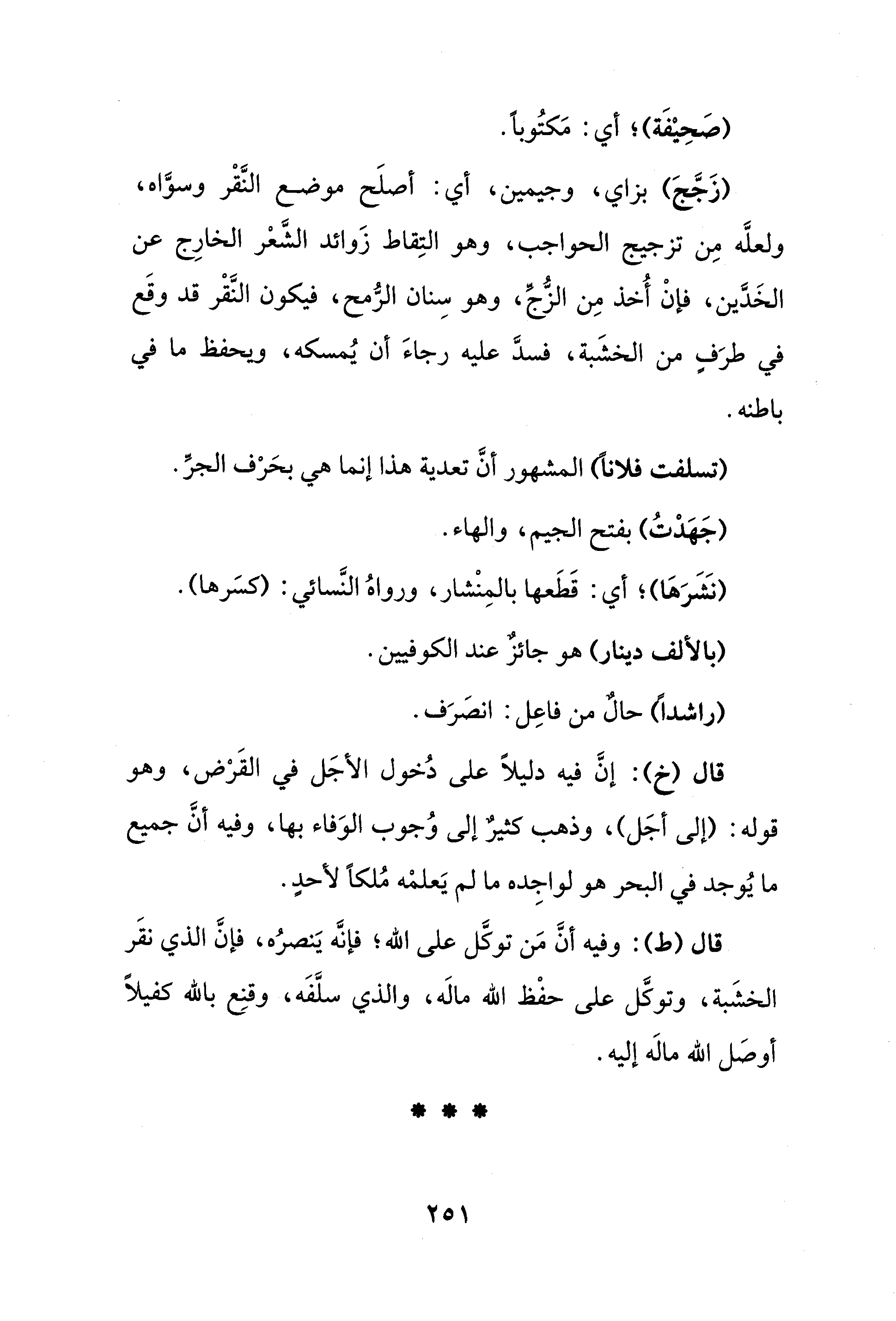 (زَجَّجَ) بزاي، وجيمين، أي: أصلَح موضع النَّقْر وسوَّاه، ولعلَّه مِن تزجيج الحواجب، وهو التِقاط زَوائد الشَّعْر الخارِج عن الخَدَّين، فإنْ أُخذ مِن الزُّجِّ، وهو سِنان الرُّمح، فيكون النَّقْر قد وقَع في طرَفٍ من الخشَبة، فسدَّ عليه رجاءَ أن يُمسكه، ويحفظ ما في باطنه.