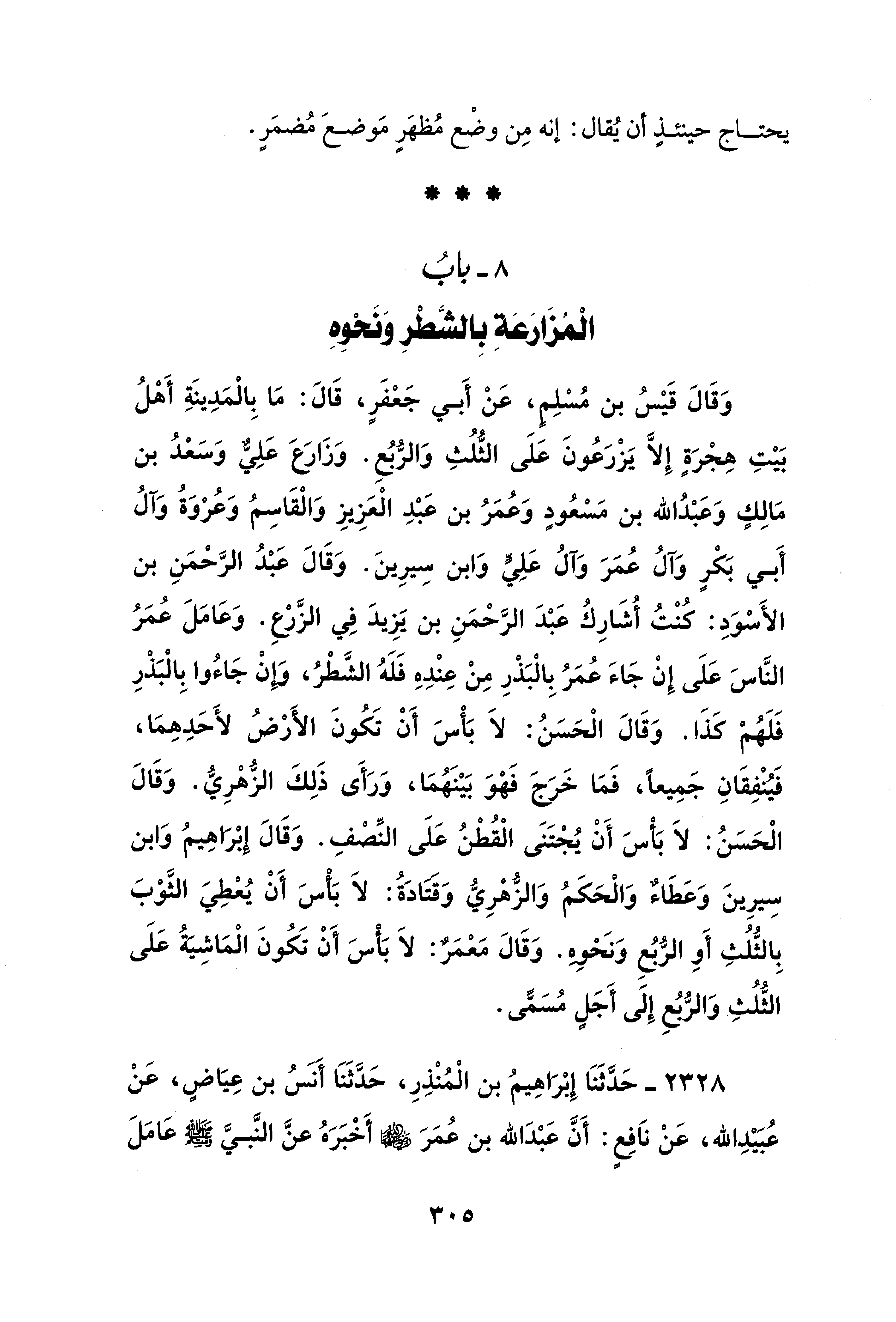 8 - بابُ الْمُزَارَعَةِ بِالشَّطْرِ وَنَحْوِهِ