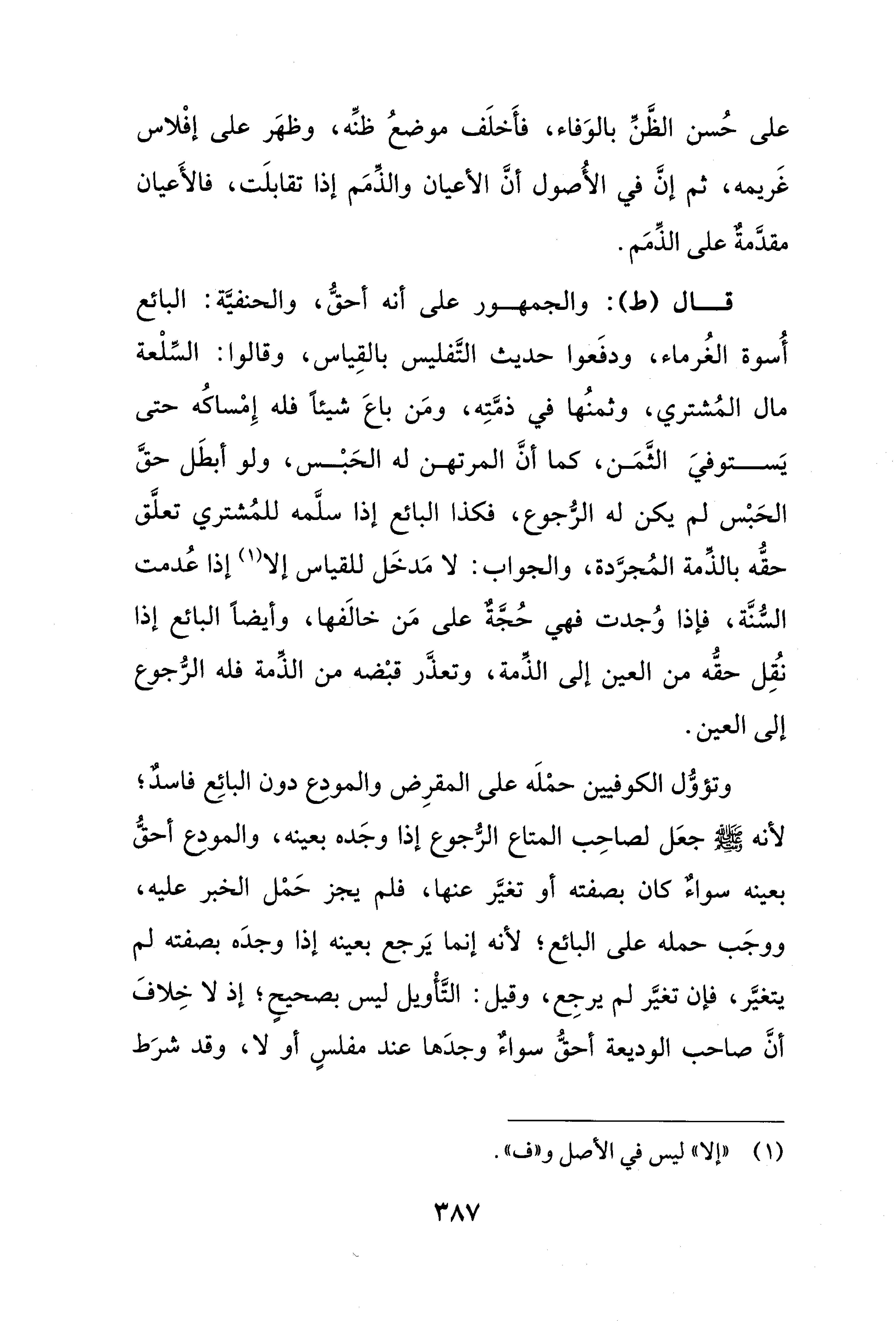 على حُسن الظَّنِّ بالوَفاء، فأَخلَف موضعُ ظنِّه، وظهَر على إفْلاس غَريمه، ثم إنَّ في الأُصول أنَّ الأعيان والذِّمَم إذا تقابلَت، فالأَعيان مقدَّمةٌ على الذِّمَم.