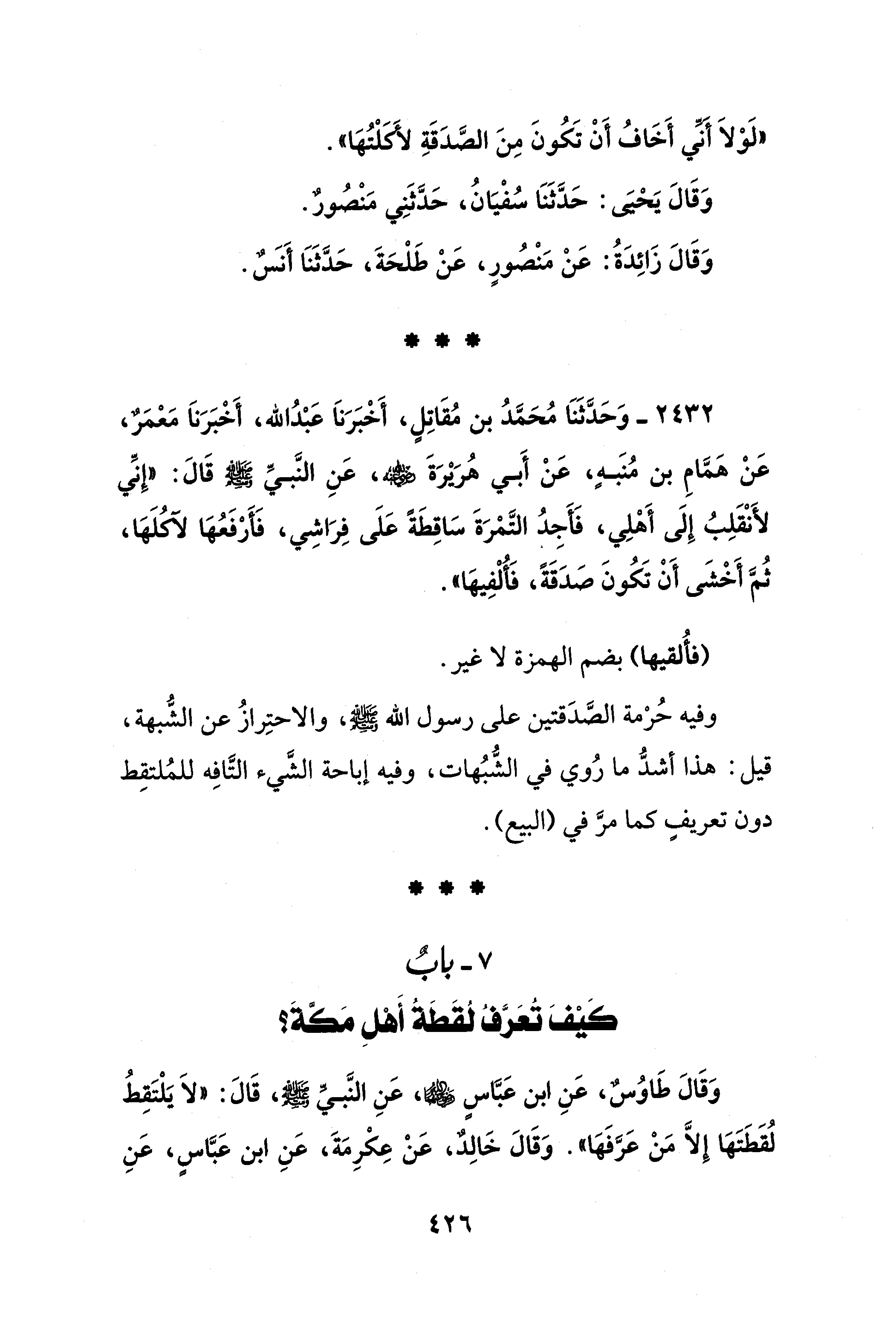 7 - بابٌ كيف تُعَرَّفُ لُقَطَةُ أَهْلِ مَكَّةَ؟
