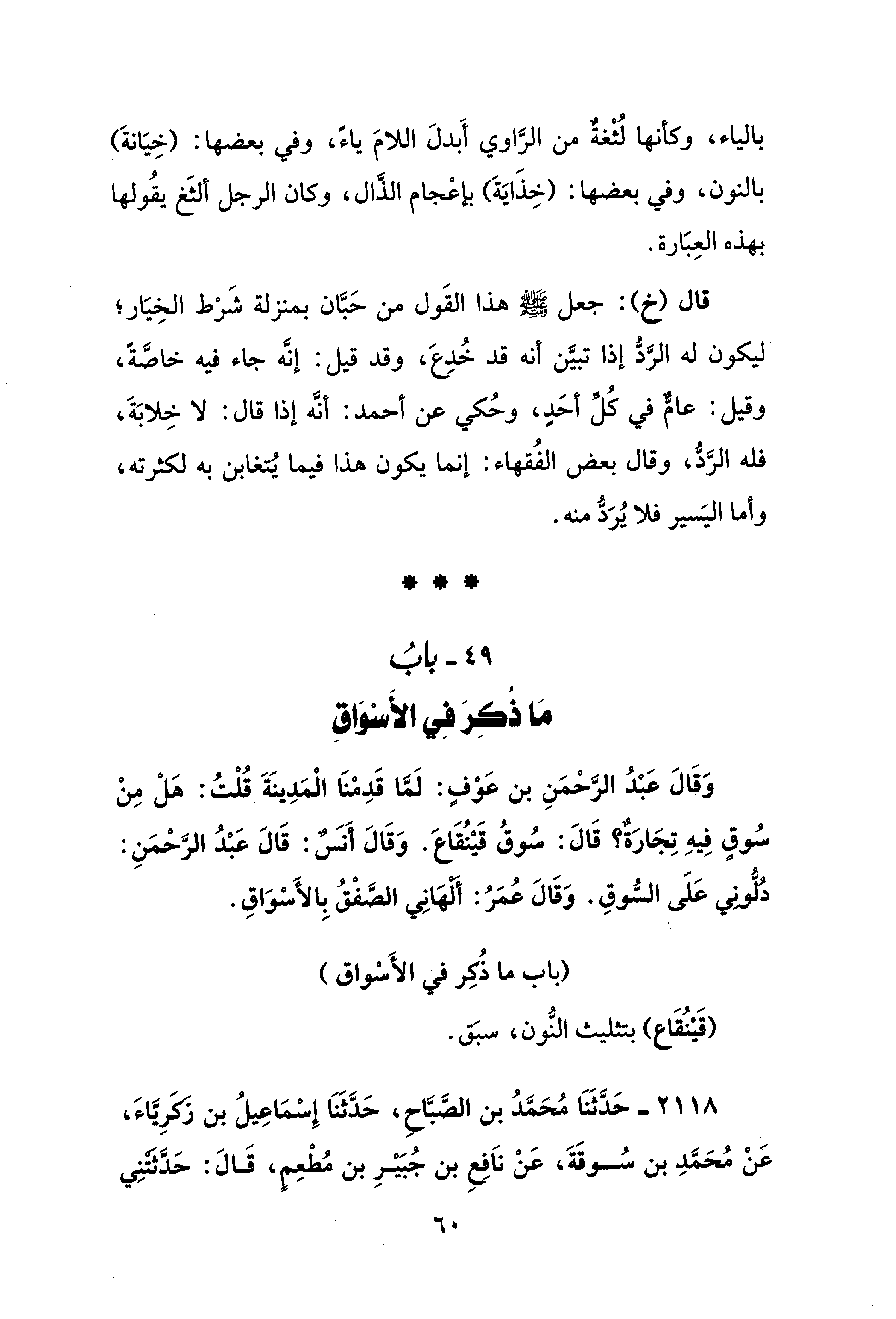 2118 - حَدَّثَنَا مُحَمَّدُ بن الصَّبَّاحِ، حَدَّثَنَا إِسْمَاعِيلُ بن زَكَرِيَّاءَ، عَنْ مُحَمَّدِ بن سُوقَةَ، عَنْ ناَفِعِ بن جُبَيْرِ بن مُطْعِمٍ، قَالَ: حَدَّثَتْنِي