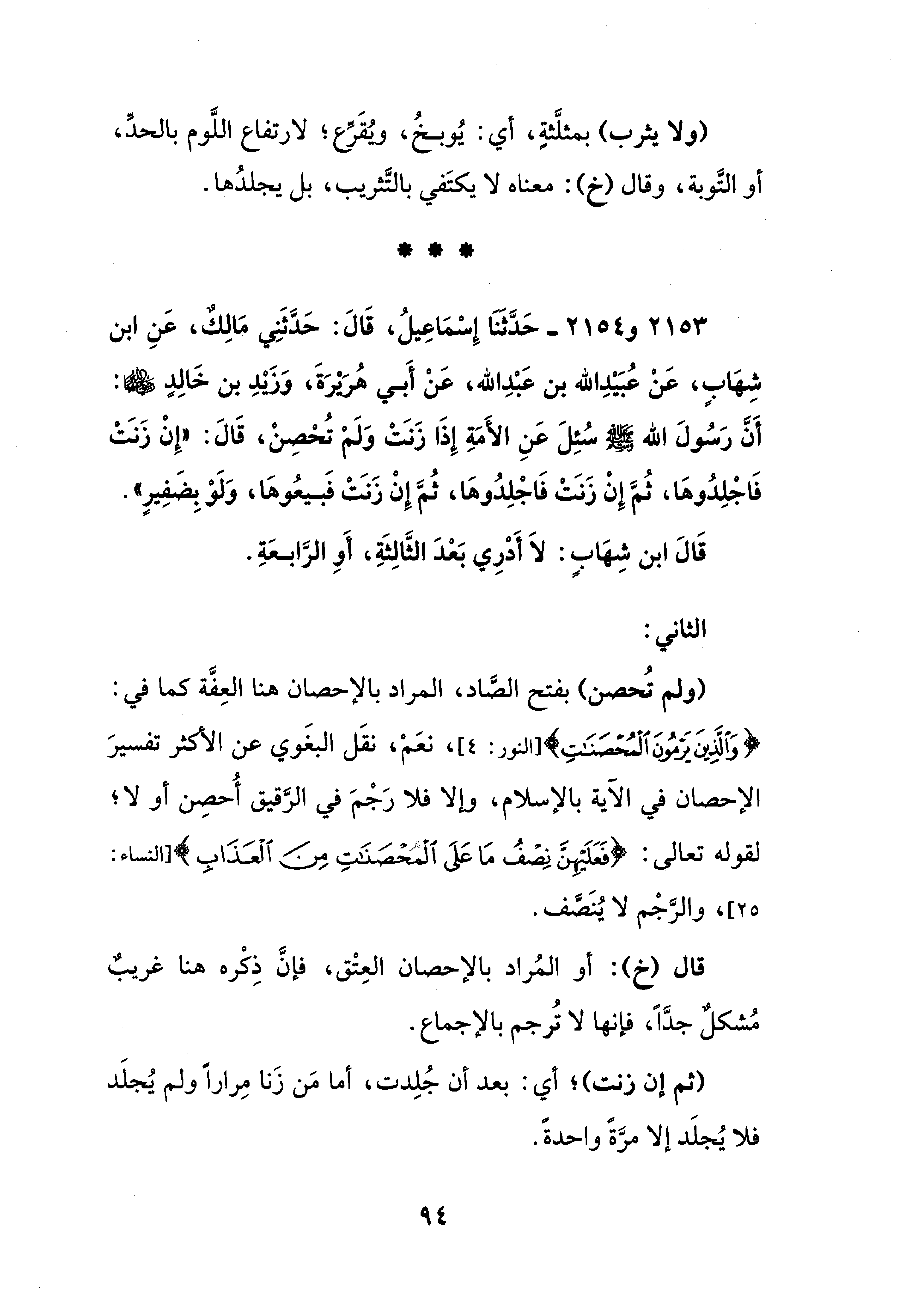 2153 - و 2154 - حَدَّثَنَا إِسْمَاعِيلُ، قَالَ: حَدَّثَنِي مَالِكٌ، عَنِ ابن شِهَابٍ، عَنْ عُبَيْدِ الله بن عَبْدِ الله، عَنْ أَبي هُرَيْرَةَ، وَزَيْدِ بن خَالِدٍ - رضي الله عنه -: أَنَّ رَسُولَ الله - صلى الله عليه وسلم - سُئِلَ عَنِ الأَمَةِ إِذَا زَنَتْ وَلَمْ تُحْصِنْ، قَالَ: "إِنْ زَنَتْ فَاجْلِدُوهَا، ثُمَّ إِنْ زَنَتْ فَاجْلِدُوهَا، ثُمَّ إِنْ زَنَتْ فَبيعُوهَا، وَلَوْ بِضَفِيرٍ".