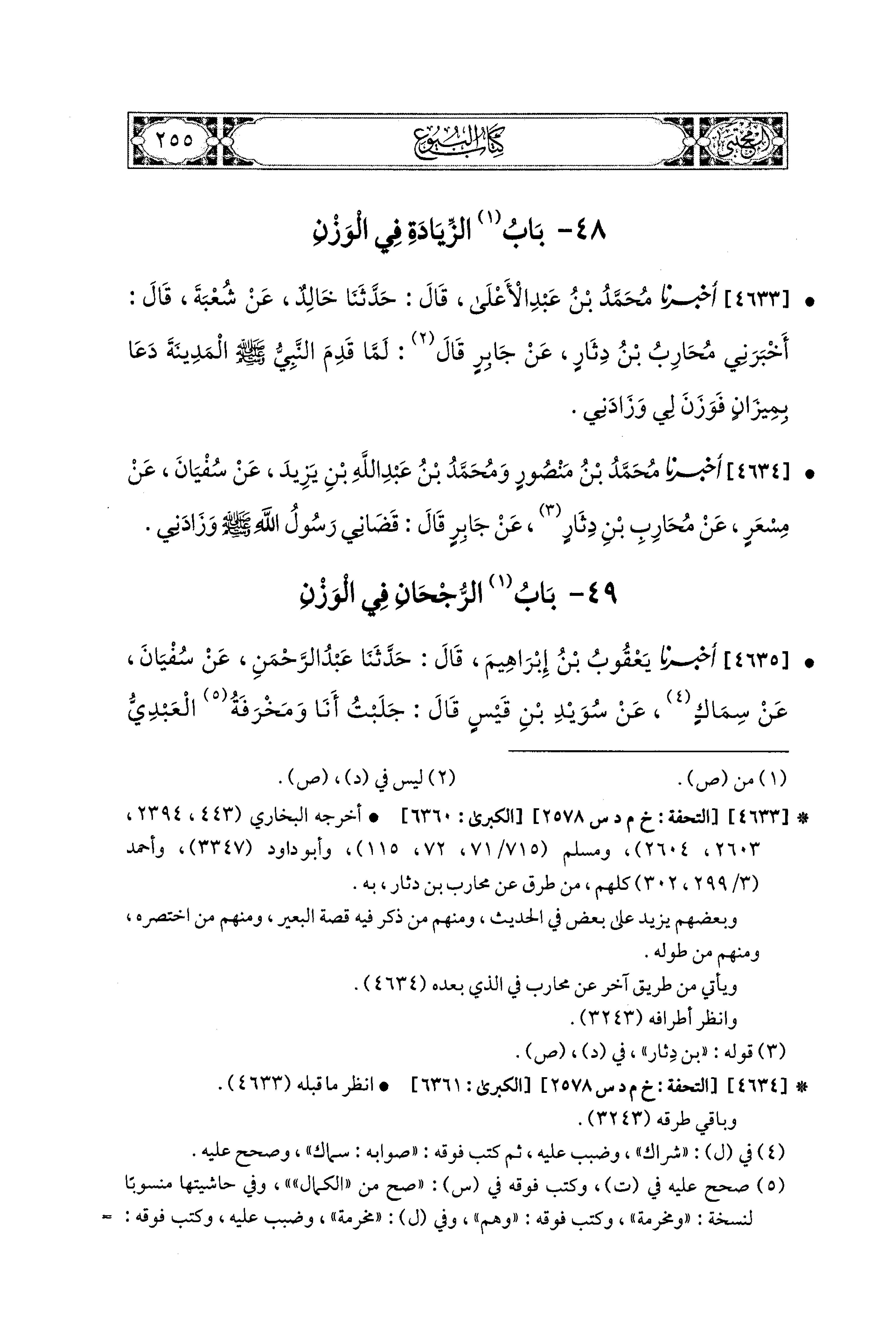 49- باب الرُّجْحَانُ فِي الوَزْنِ.