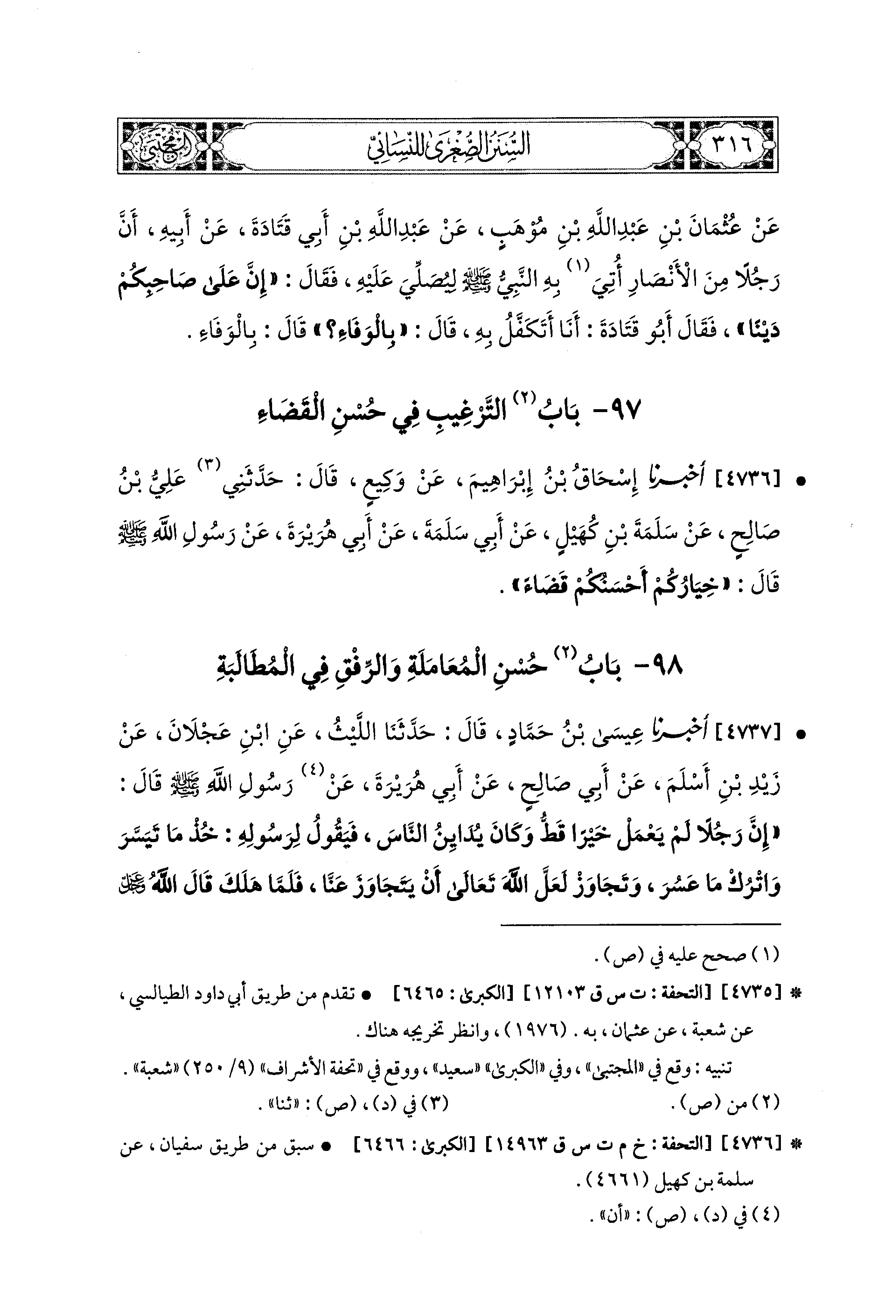 97- باب التَّرْغِيبُ فِي حُسْنِ القَضَاءِ.