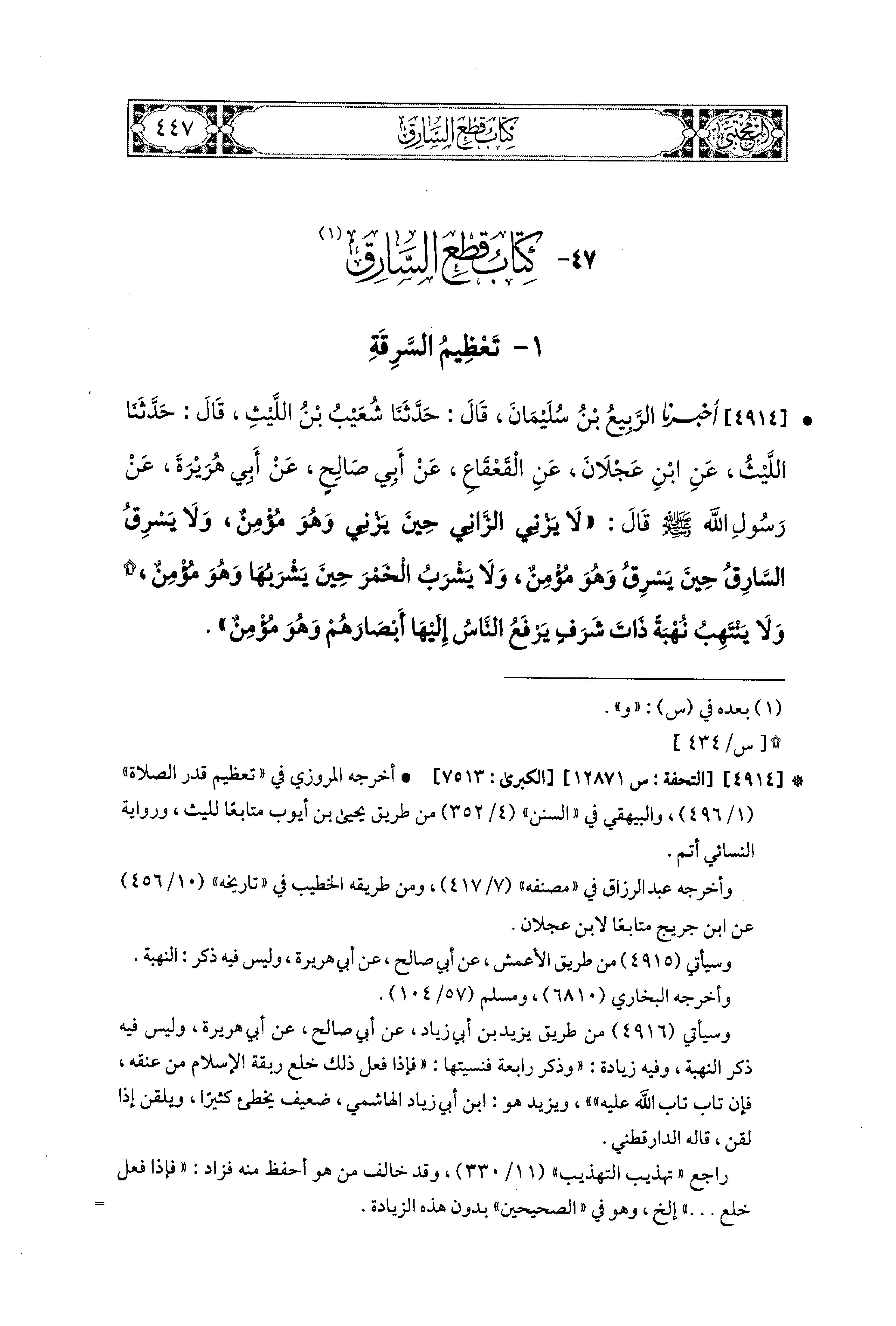 47 - كِتَابُ قَطْعِ السَّارِقِ.