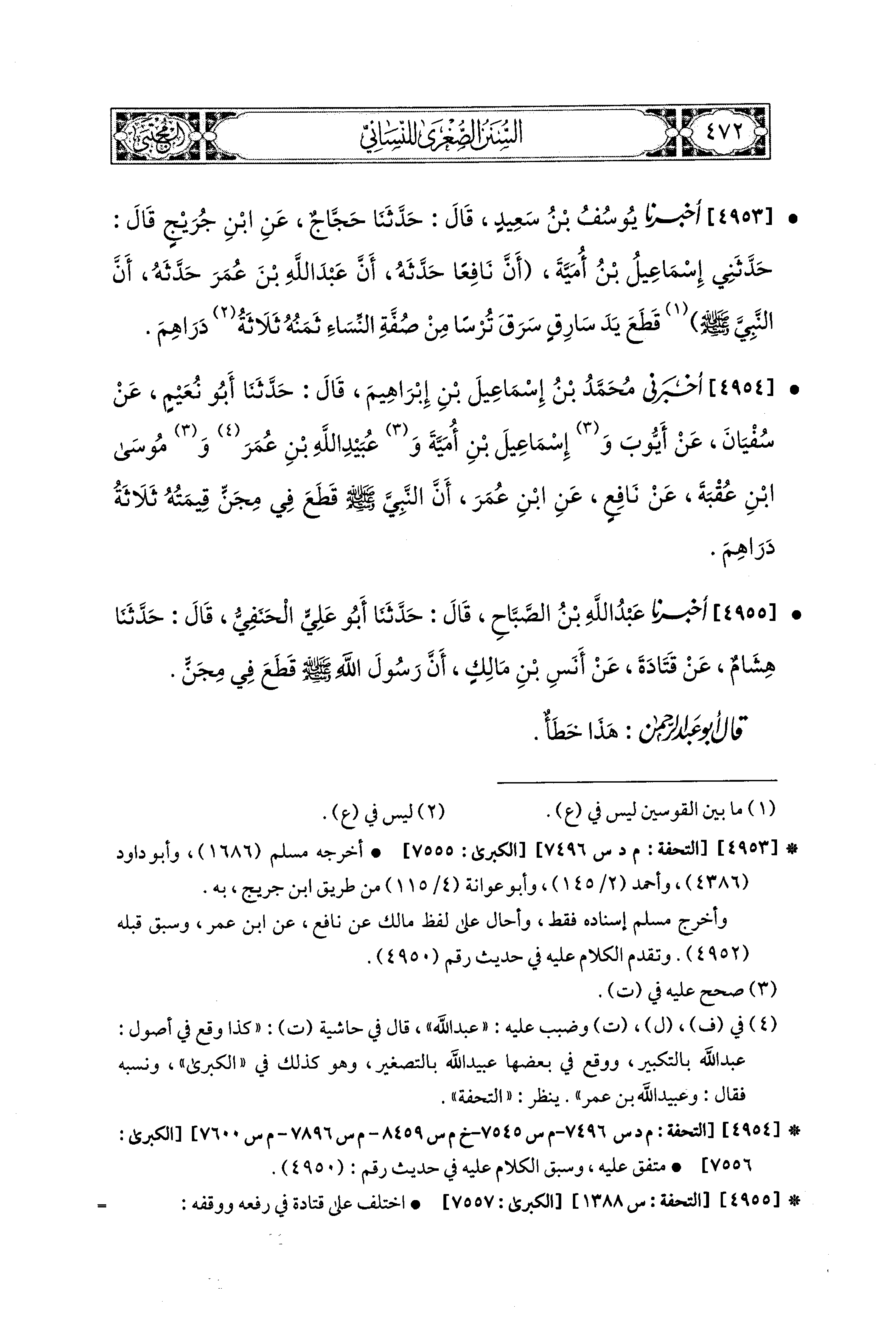 قَالَ أَبو عَبدِ الرَّحمَنِ: هَذَا خَطَأٌ.