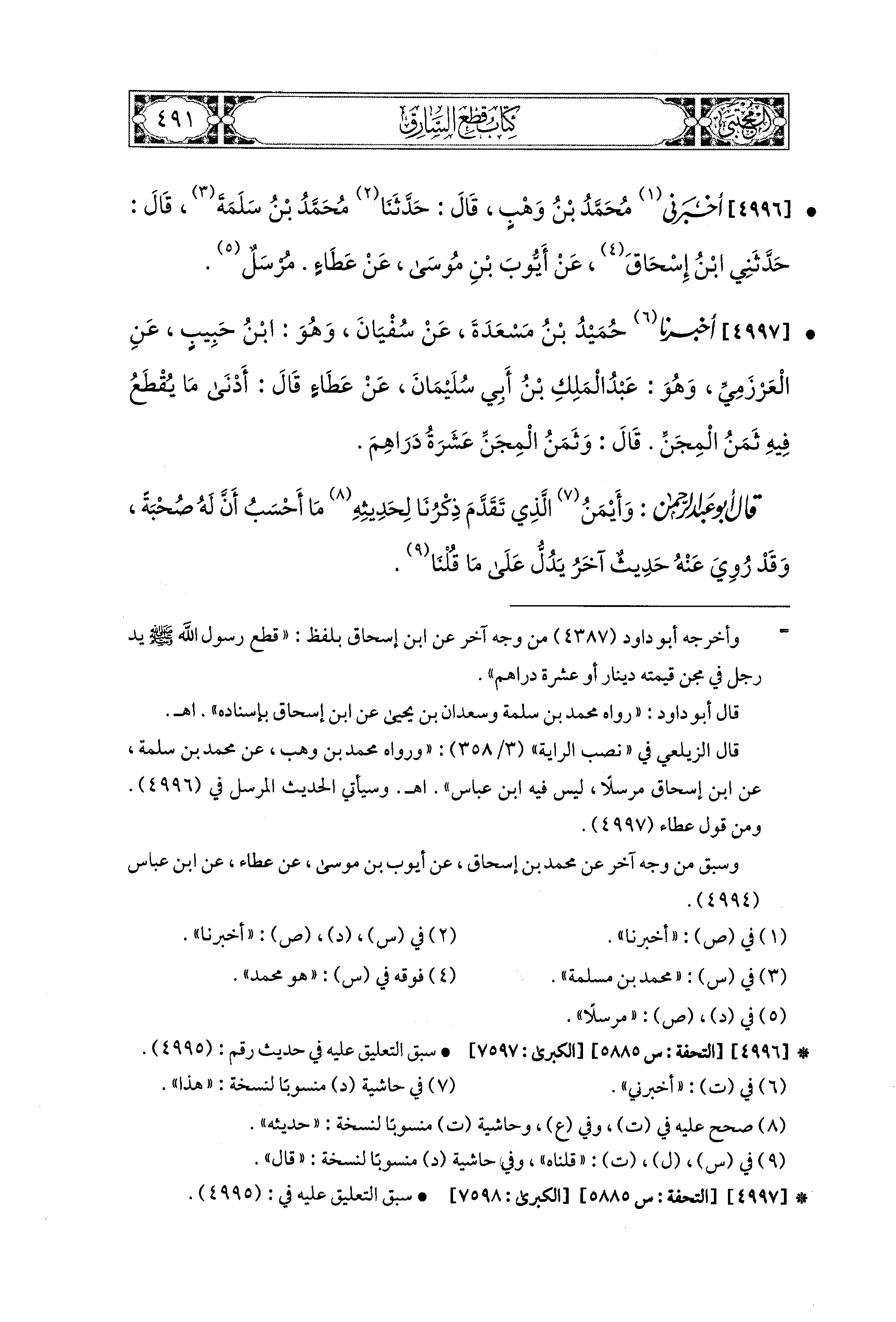 4996- أَخْبَرَني مُحَمدُ بْنُ وَهْبٍ، قال: حَدثنا مُحَمدُ بْنُ سَلَمَةَ، قَالَ: حَدَّثَني ابْنُ إِسحَاقَ، عَن أَيُّوبَ بْنِ مُوسَى، عَن عَطَاءٍ، مُرْسَلٌ.