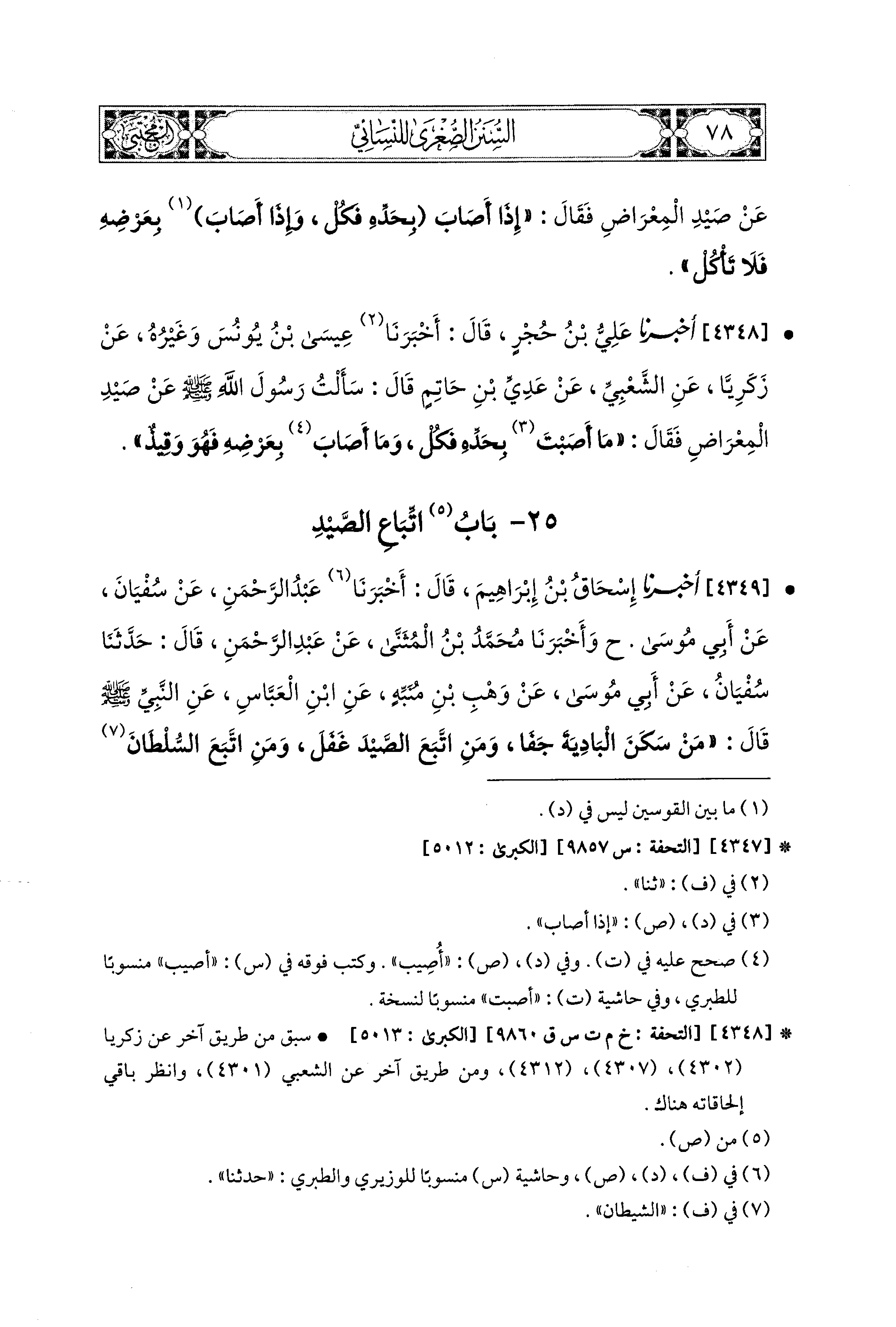 4349- أَخبَرَنا إِسحَاقُ بْنُ إِبراهِيمَ، قَالَ: أَخبَرنا عَبدُ الرَّحمَنِ، عَن سُفْيَانَ، عَن أَبِي مُوسَى (ح) وأَخبَرنا مُحَمدُ بْنُ المُثَنَّى، عَن عَبدِ الرَّحمَنِ، قال: حَدثنا سُفْيَانُ، عَن أَبِي مُوسَى، عَن وَهْبِ بْنِ مُنَبِّهٍ، عَنِ ابنِ العَبَّاسٍ، عَنِ النَّبيِّ صَلى الله عَليه وسَلم قَالَ: مَنْ سَكَنَ البَادِيَةَ جَفَا، وَمَنِ اتَّبَعَ الصَّيْدَ غَفُلَ، وَمَنِ اتَّبَعَ السُّلْطَانَ افْتُتِنَ.
