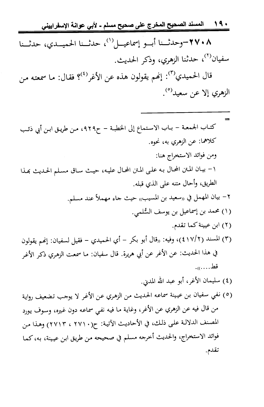 (¬5) نفي سفيان بن عيينة سماعه الحديث من الزهري عن الأغر لا يوجب تضعيف رواية من قال فيه عن الزهري عن الأغر، وغاية ما فيه نفي سماعه دون غيره، وسوف يورد المصنف الدلالة على ذلك، في الأحاديث الآتية: ح (2710، 2713) وهذا من فوائد الاستخراج، والحديث أخرجه مسلم في صحيحه من طريق ابن عيينة، به، كما تقدم.