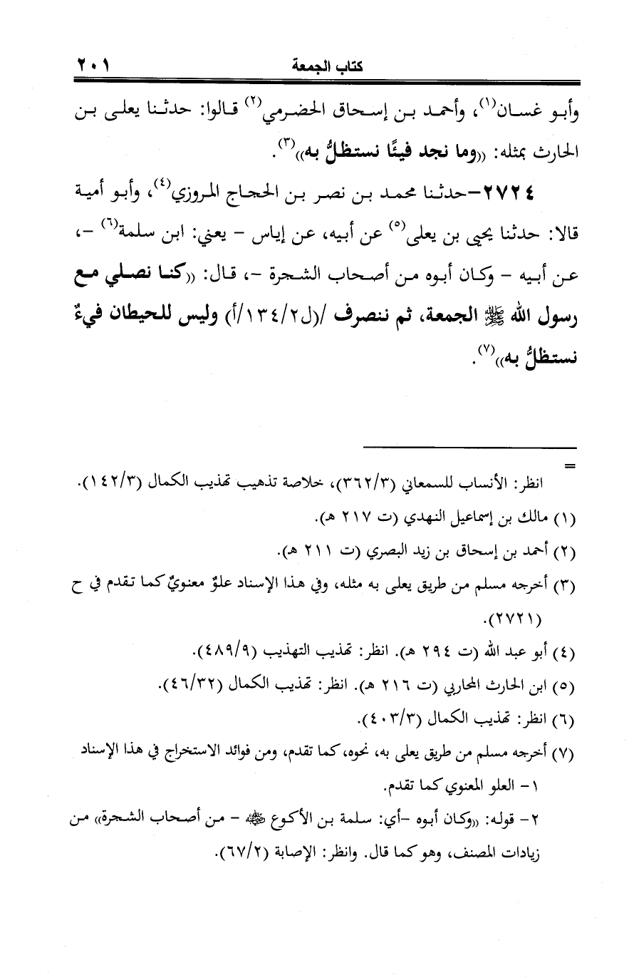 2724 - حدثنا محمد بن نصر بن الحجاج المروزي (¬1)، وأبو أمية قالا: حدثنا يحيى بن يعلى (¬2) عن أبيه، عن إياس -يعني: ابن سلمة (¬3) -، عن أبيه -وكان أبوه من أصحاب الشجرة-، قال: "كنا نصلي مع رسول الله -صلى الله عليه وسلم- الجمعة، ثم ننصرف وليس للحيطان فيءٌ نستظلُّ به " (¬4).