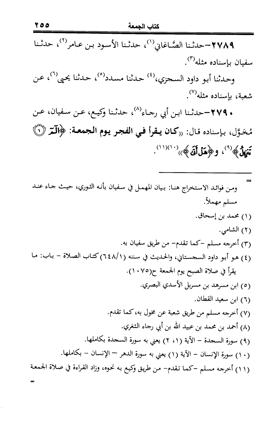 (¬4) هو أبو داود السجستاني، والحديث في سننه (1/ 648) كتاب الصلاة -باب: ما يقرأ في صلاة الصبح يوم الجمعة ح (1075).