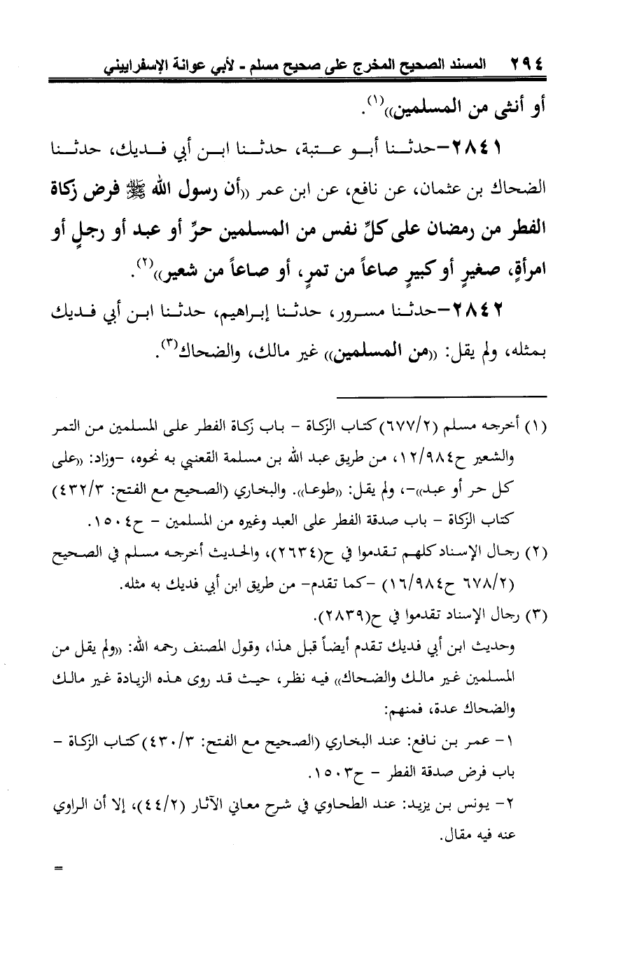2842 - حدثنا مسرور، حدثنا إبراهيم، حدثنا ابن أبي فديك بمثله، ولم يقل: "من المسلمين" غير مالك، والضحاك (¬1).