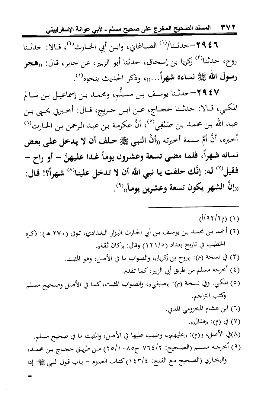 2946 - حدّثنا (¬1) الصاغاني، وابن أبي الحارث (¬2)، قالا: حدّثنا روح، حدّثنا (¬3) زكريا بن إسحاق، حدّثنا أبو الزبير، عن جابر، قال: "هجر رسول الله -صلى الله عليه وسلم- نساءه شهرًا ... "، وذكر الحديث بنحوه (¬4).