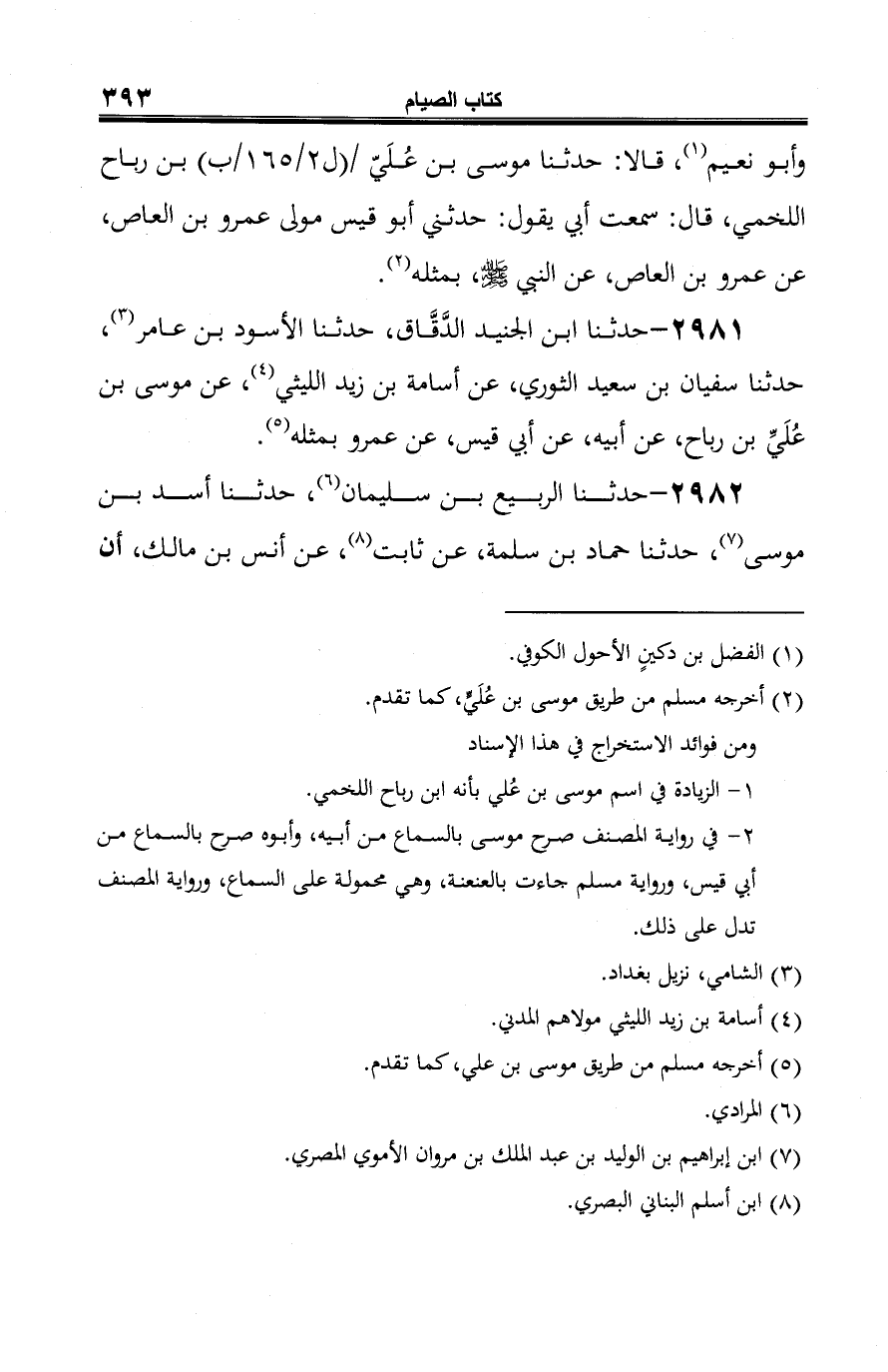 2981 - حدّثنا ابن الجنيد الدَّقَّاق، حدّثنا الأسود بن عامر (¬1)، حدّثنا سفيان بن سعيد الثّوريّ، عن أسامة بن زيد الليثي (¬2)، عن موسى بن عُلَيِّ بن رباح، عن أبيه، عن أبي قيس، عن عمرو بمثله (¬3).