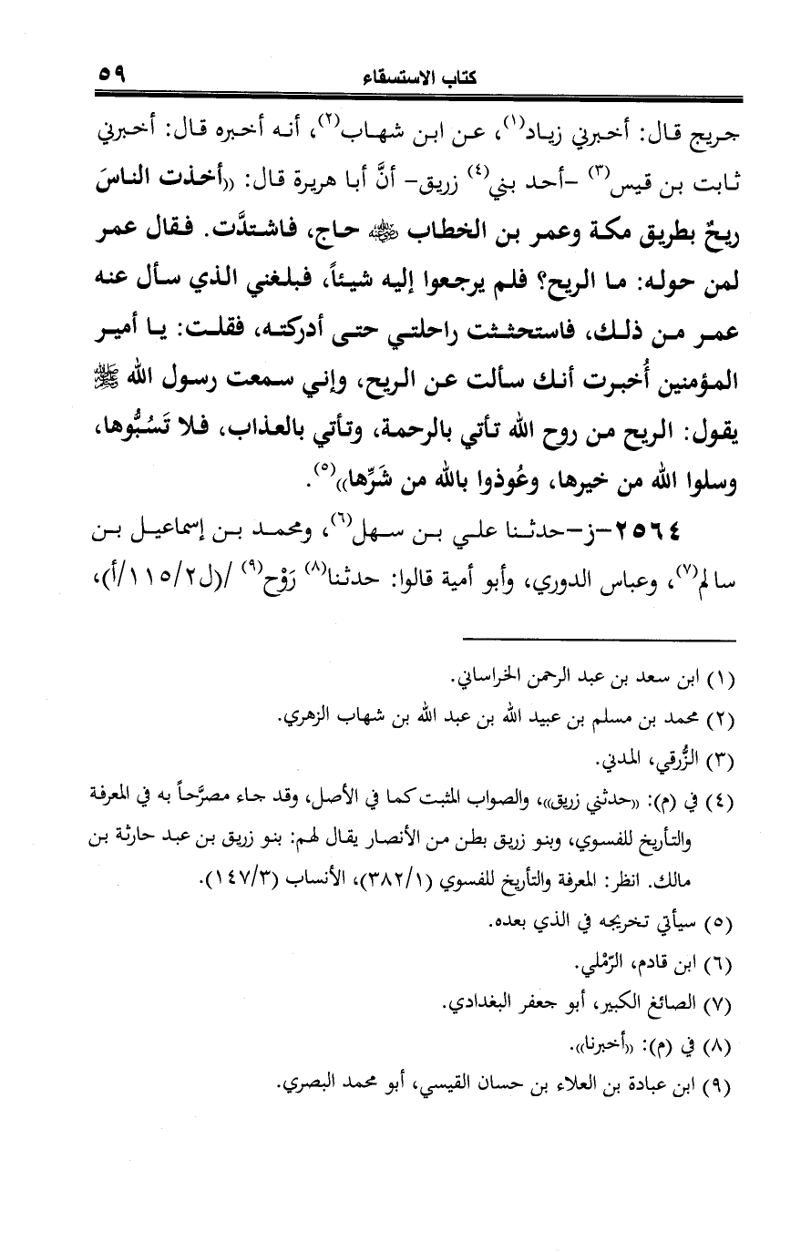 (¬5) هذا الحديث من زوائد المصنف، وقد أخرجه أبو داود (السنن: 5/ 328) كتاب الأدب -باب: ما يقول إذا هاجت الريح- ح 5097، وابن أبي شيبة في المصنف (7/ 31) كتاب الدعاء -باب: ما يدعى به للريح إذا هبت، ومن طريقه ابن ماجه (السنن: 2/ 128) كتاب الأدب -باب: النهي عن سب الريح- ح 3727، وأحمد في المسند (2/ 250، 267، 437)، والبخاري في الأدب المفرد (فضل الله الصمد في توضيح الأدب المفرد: 2/ 353)، والفسوي في المعرفة والتاريخ (1/ 382)، وابن حبان في صحيحه (3/ 287)، والحاكم في المستدرك (4/ 285) وقال: "صحيح الإسناد على شرط الشيخين ولم يخرجاه"، وقال الذهبي: "صحيح". كلهم من طرق عن الزهريّ، عن ثابت بن قيس، عن أبي هريرة، وليس عند بعضهم قصة عمر -رضي الله عنه-.