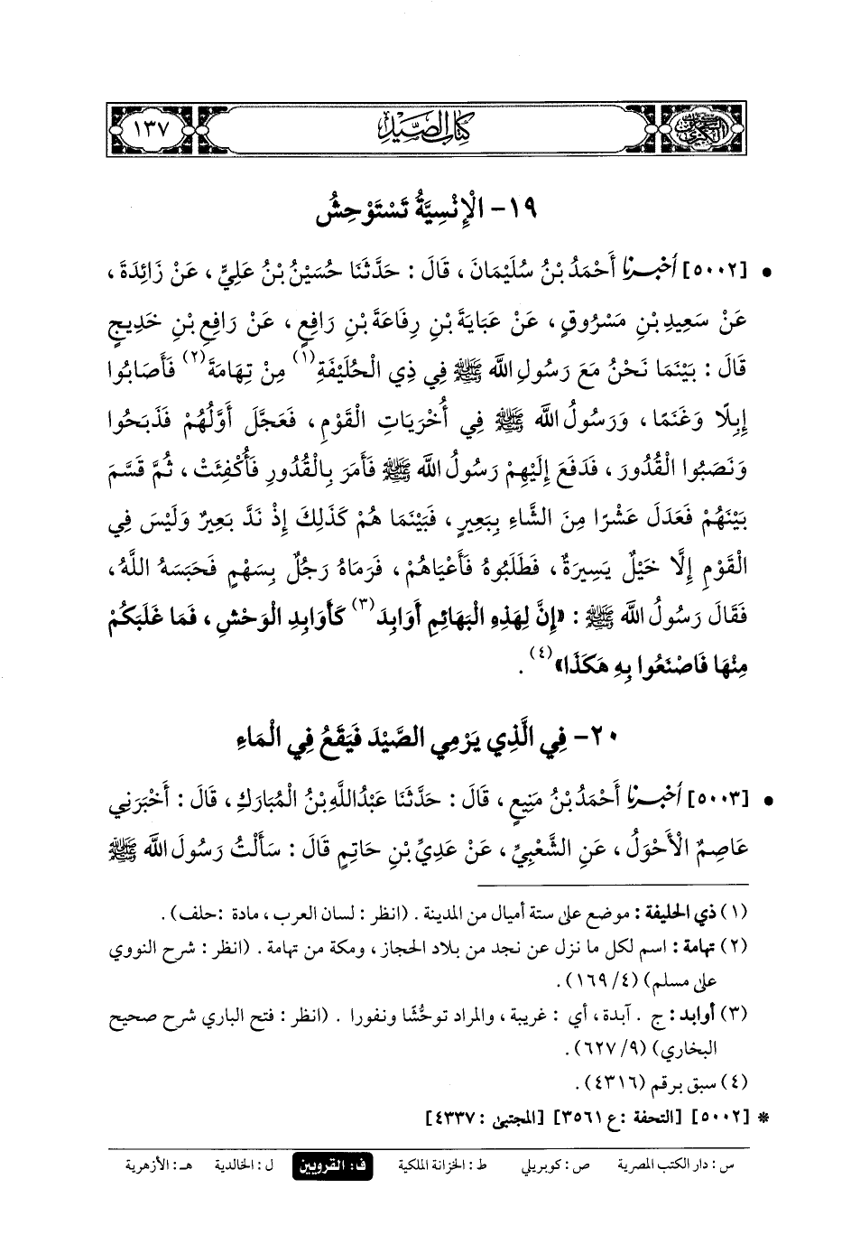20- فِي الَّذِي يَرْمِي الصَّيْدَ فَيَقَعُ فِي المَاءِ.