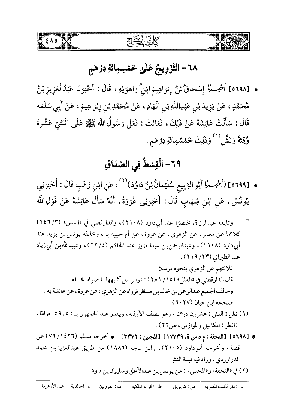 68- التَّزْوِيجُ عَلَى خَمْسِ مِئَةِ دِرْهَمٍ.