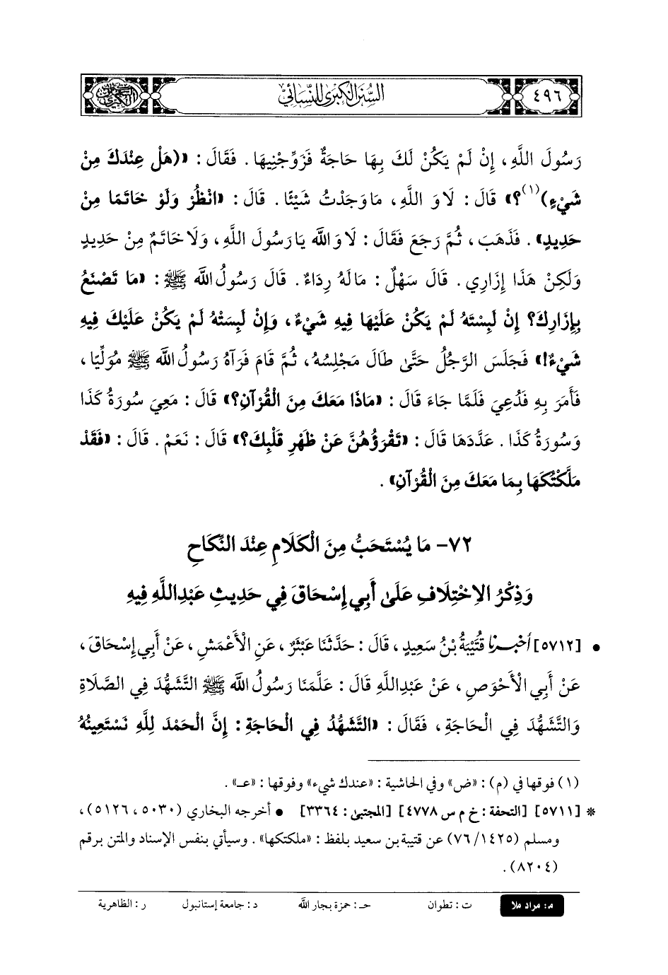 72- مَا يُسْتَحَبُّ مِنَ الكَلامِ عِنْدَ النِّكَاحِ