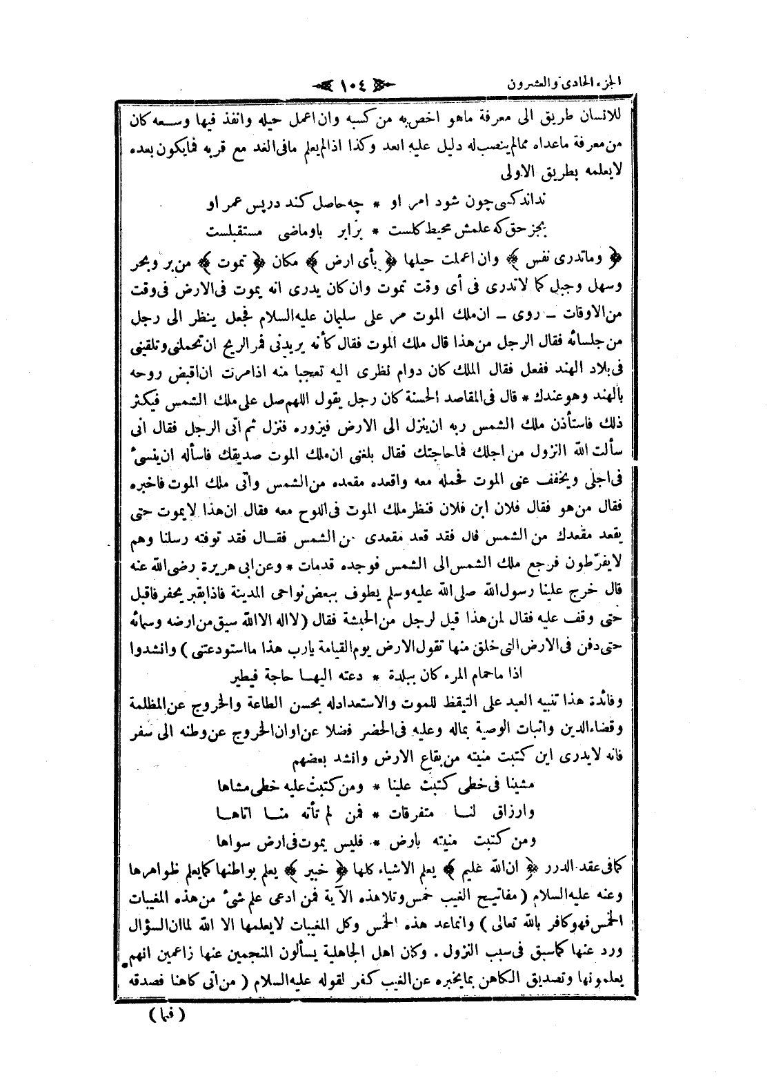 وفائدة هذا تنبيه العبد على التيقظ للموت والاستعداد له بحسن الطاعة والخروج عن المظلمة وقضاء الدين واثبات الوصية بماله وعليه فى الحضر فضلا عن أوان الخروج عن وطنه الى سفر فانه لا يدرى اين كتبت منيته من بقاع الأرض وانشد بعضهم