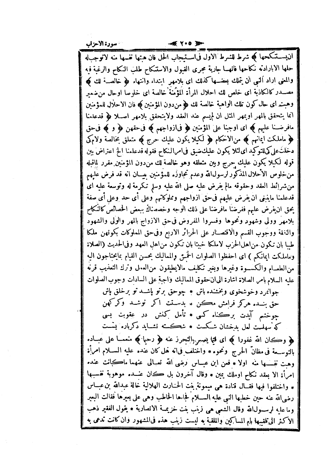 وَكانَ اللَّهُ غَفُوراً اى فيما يعسر التحرز عنه رَحِيماً منعما على عباده بالتوسعة فى مظانّ الحرج ونحوه واختلف فى انه هل كان عنده عليه السلام امرأة وهبت نفسها منه اولا فعن ابن عباس رضى الله تعالى عنهما ما كانت عنده امرأة الا بعقد نكاح او ملك يمين وقال آخرون بل كان عنده موهوبة نفسها واختلفوا فيها فقال قتادة هى ميمونة بنت الحارث الهلالية خالة عبد الله بن عباس رضى الله عنه حين خطبها النبي عليه السلام فجاءها الخاطب وهى على بعيرها فقالت البعير وما عليه لرسول الله وقال الشعبي هى زينب بنت خزيمة الانصارية يقول الفقير ذهب الأكثر الى تلقيبها بام المساكين والملقبة به ليست زينب هذه فى المشهور وان كانت تدعى به
