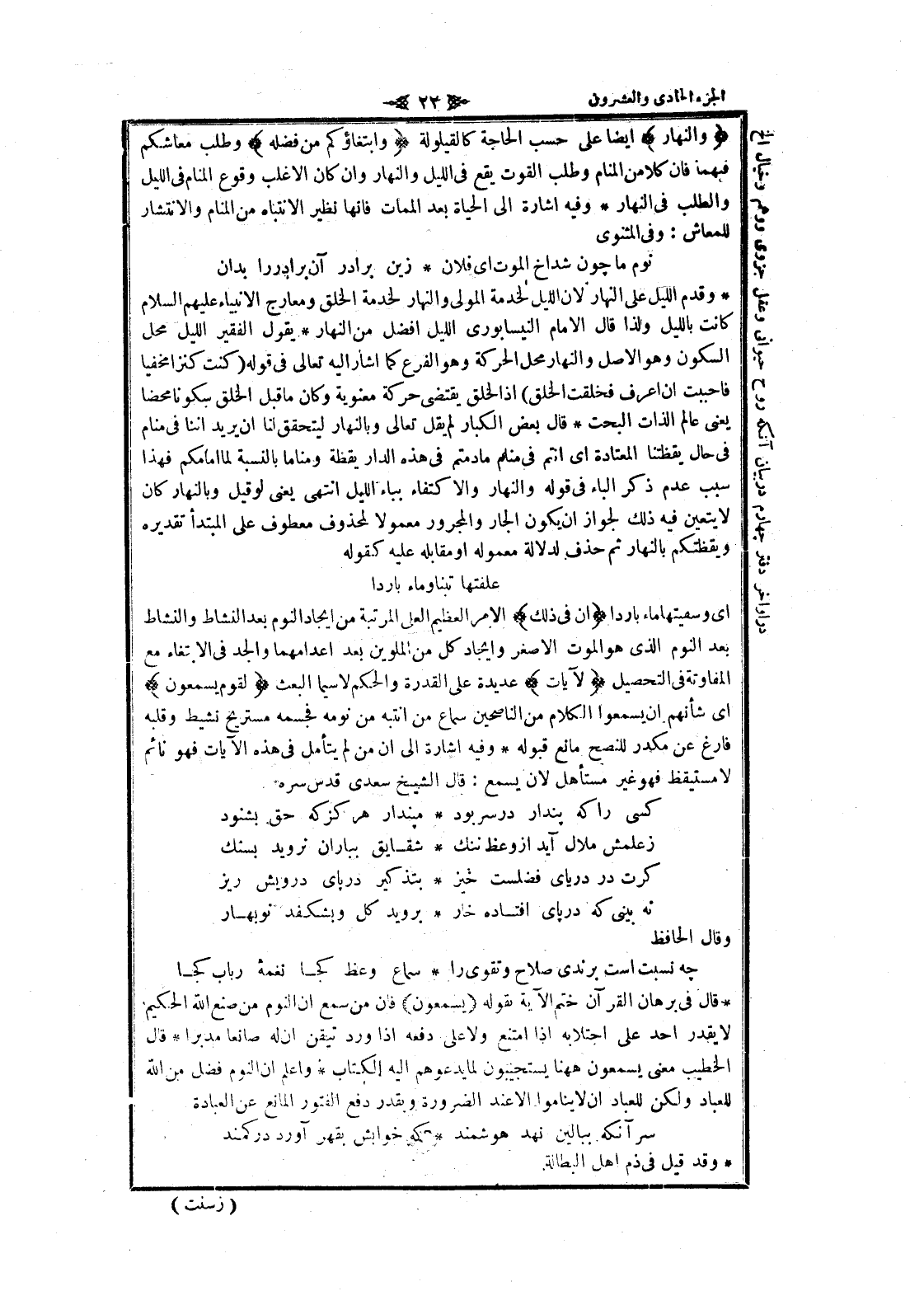 قال فى برهان القرآن ختم الآية بقوله (يَسْمَعُونَ) فان من سمع ان النوم من صنع الله الحكيم لا يقدر أحد على احتلابه إذا امتنع ولا على دفعه إذا ورد تيقن ان له صانعا مدبرا قال الخطيب معنى يسمعون هاهنا يستجيبون لما يدعوهم اليه الكتاب واعلم ان النوم فضل من الله للعباد ولكن للعباد ان لا يناموا الا عند الضرورة وبقدر دفع الفتور المانع عن العبادة