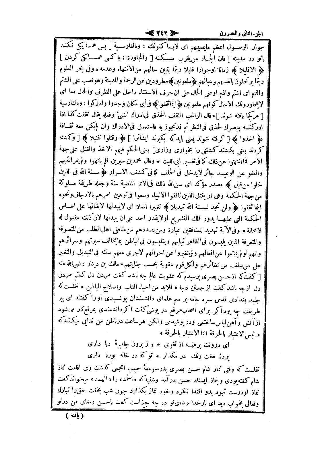 جوار الرسول أعظم ما يصيبهم اى لا يساكنونك: وبالفارسية [پس همسايكى نكند با تو در مدينه] فان الجار من يقرب مسكنه [والمجاورة: با كسى همسايكى كردن] إِلَّا قَلِيلًا زمانا او جوارا قليلا ريثما يتبين حالهم من الانتهاء وعدمه وفى بحر العلوم ريثما يرتحلون بانفسهم وعيالهم مَلْعُونِينَ مطرودين عن الرحمة والمدينة وهو نصب على الشتم والذم اى اشتم واذم او على الحال على ان حرف الاستثناء داخل على الظرف والحال معا اى لا يجاورونك الا حال كونهم ملعونين أَيْنَما ثُقِفُوا فى أي مكان وجدوا وأدركوا: وبالفارسية [هر كجا يافته شوند] قال الراغب الثقف الحذق فى ادراك الشيء وفعله يقال ثقفت كذا إذا أدركته ببصرك لحذق فى النظر ثم قد تجوز به فاستعمل فى الإدراك وان لم يكن معه ثقافة أُخِذُوا [كرفته شوند يعنى بايد كه بگيرند ايشانرا] وَقُتِّلُوا تَقْتِيلًا [وكشته كردند يعنى بكشند كشتنى را بخوارى وزارى] يعنى الحكم فيهم الاخذ والقتل على جهة الأمر فما انتهوا عن ذلك كما فى تفسير ابى الليث وقال محمد بن سيرين فلم ينتهوا ولم يغر الله بهم والعفو عن الوعيد جائز لا يدخل فى الخلف كما فى كشف الاسرار سُنَّةَ اللَّهِ فِي الَّذِينَ خَلَوْا مِنْ قَبْلُ مصدر مؤكد اى سن الله ذلك فى الأمم الماضية سنة وجعله طريقة مسلوكة من جهة الحكمة وهى ان يقتل الذين نافقوا الأنبياء وسعوا فى توهين أمرهم بالارجاف ونحوه أينما ثقفوا وَلَنْ تَجِدَ لِسُنَّةِ اللَّهِ تَبْدِيلًا تغييرا أصلا اى لا يبدلها لابتنائها على أساس الحكمة التي عليها يدور فلك التشريع اولا يقدر أحد على ان يبدلها لانّ ذلك مفعول له لا محالة وفى الآية تهديد للمنافقين عبارة ومن بصددهم من منافقى اهل الطلب من المتصوفة والمتعرفة الذين يلبسون فى الظاهر ثيابهم ويتلبسون فى الباطن بما يخالف سيرتهم وسرائرهم وانهم لو لم يمتنعوا عن أفعالهم ولم يتغيروا عن أحوالهم لا جرى معهم سنته فى التبديل والتغيير على من سلف من نظائرهم ولكل قوم عقوبة بحسب جنايتهم مالك بن دينار رضى الله عنه [كفت كه از حسن بصرى پرسيدم كه عقوبت عالم چهـ باشد كفت مردن دل كفتم مردن دل از چهـ باشد كفت از جستن دنيا «فلا بد من احياء القلب وإصلاح الباطن» نقلست كه جنيد بغدادى قدس سره جامه بر سم علماى دانشمندان پوشيدى او را كفتند اى پير طريقت چهـ بود اگر براى اصحاب مرقع در پوشى كفت اگر دانشمندى بمرقع كار مى شود از آتش وآهن لباس ساختمى ودر پوشيدمى ولكن هر ساعت در باطن من ندايى ميكنند كه «ليس الاعتبار بالخرقة انما الاعتبار بالحرفة»