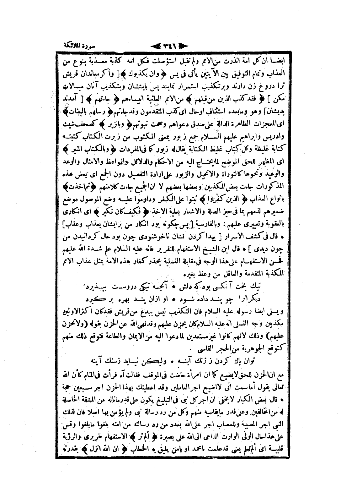 ايضا ان كل امة أنذرت من الأمم ولم تقبل استؤصلت فكل امة مكذبة معذبة بنوع من العذاب وتمام التوفيق بين الآيتين يأتى فى يس وَإِنْ يُكَذِّبُوكَ [واگر معاندان قريش ترا دروغ زن دارند وبر تكذيب استمرار نمايند پس بايشان وبتكذيب آنان مبالات مكن] فَقَدْ كَذَّبَ الَّذِينَ مِنْ قَبْلِهِمْ من الأمم العاتية أنبياءهم جاءَتْهُمْ [آمدند بديشان] وهو وما بعده استئناف او حال اى كذب المتقدمون وقد جاءتهم رُسُلُهُمْ بِالْبَيِّناتِ اى المعجزات الظاهرة الدالة على صدق دعواهم وصحت نبوتهم وَبِالزُّبُرِ كصحف شيث وإدريس وابراهيم عليهم السلام جمع زبور بمعنى المكتوب من زبرت الكتاب كتبته كتابة غليظة وكل كتاب غليظ الكتابة يقال له زبور كما فى المفردات وَبِالْكِتابِ الْمُنِيرِ اى المظهر للحق الموضح لما يحتاج اليه من الاحكام والدلائل والمواعظ والأمثال والوعد والوعيد ونحوها كالتوارة والإنجيل والزبور على ارادة التفصيل دون الجمع اى بعض هذه المذكورات جاءت بعض المكذبين وبعضها بعضهم لا ان الجميع جاءت كلا منهم ثُمَّ أَخَذْتُ بانواع العذاب الَّذِينَ كَفَرُوا ثبتوا على الكفر وداوموا عليه وضع الموصول موضع ضميرهم لذمهم بما فى حيز الصلة والاشعار بعلية الاخذ فَكَيْفَ كانَ نَكِيرِ اى إنكاري بالعقوبة وتعييرى عليهم: وبالفارسية [پس چكونه بود انكار من بر ايشان بعذاب وعقاب] قال فى كشف الاسرار [پيدا كردن نشان ناخوشنودى چون بود حال كردانيدن من چون ديدى] قال ابن الشيخ الاستفهام للتقرير فانه عليه السلام علم شدة الله عليهم فحسن الاستفهام على هذا الوجه فى مقابلة التسلية يحذر كفار هذه الامة بمثل عذاب الأمم المكذبة المتقدمة والعاقل من وعظ بغيره