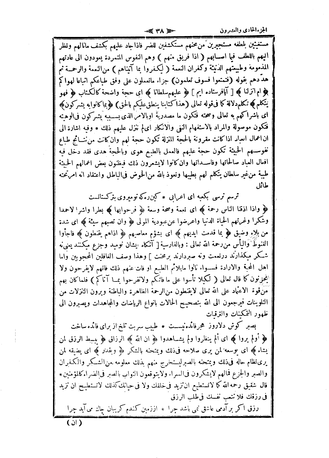 مستغيثين بلطفه مستجيرين من محنهم مستكشفين للضر فاذا جاد عليهم بكشف مانالهم ونظر إليهم باللطف فيما أصابهم (إِذا فَرِيقٌ مِنْهُمْ) وهم النفوس المتمردة يعودون الى عادتهم المذمومة وطبيعتهم الدنيئة وكفران النعمة (لِيَكْفُرُوا بِما آتَيْناهُمْ) من النعمة والرحمة ثم هدّدهم بقوله (فَتَمَتَّعُوا فَسَوْفَ تَعْلَمُونَ) جزاء ما تعملون على وفق طباعكم اتباعا لهواكم أَمْ أَنْزَلْنا [آيا فرستاده ايم] عَلَيْهِمْ سُلْطاناً اى حجة واضحة كالكتاب فَهُوَ يَتَكَلَّمُ تكلم دلالة كما فى قوله تعالى (هذا كِتابُنا يَنْطِقُ عَلَيْكُمْ بِالْحَقِّ) بِما كانُوا بِهِ يُشْرِكُونَ اى باشراكهم به تعالى وصحته فتكون ما مصدرية او بالأمر الذي بسببه يشركون فى ألوهيته فتكون موصولة والمراد بالاستفهام النفي والإنكار اى لم ننزل عليهم ذلك وفيه اشارة الى ان اعمال العباد إذا كانت مقرونة بالحجة المنزلة تكون حجة لهم وان كانت من نتائج طباع نفوسهم الخبيثة تكون حجة عليهم فالعمل بالطبع هوى وبالحجة هدى فقد دخل فيه افعال العباد صالحاتها وفاسداتها وان كانوا لا يشعرون ذلك فيظنون بعض أعمالهم الخبيثة طيبة من غير سلطان يتكلم لهم بطيبها ونعوذ بالله من الخوض فى الباطل واعتقاد انه امر تحته طائل