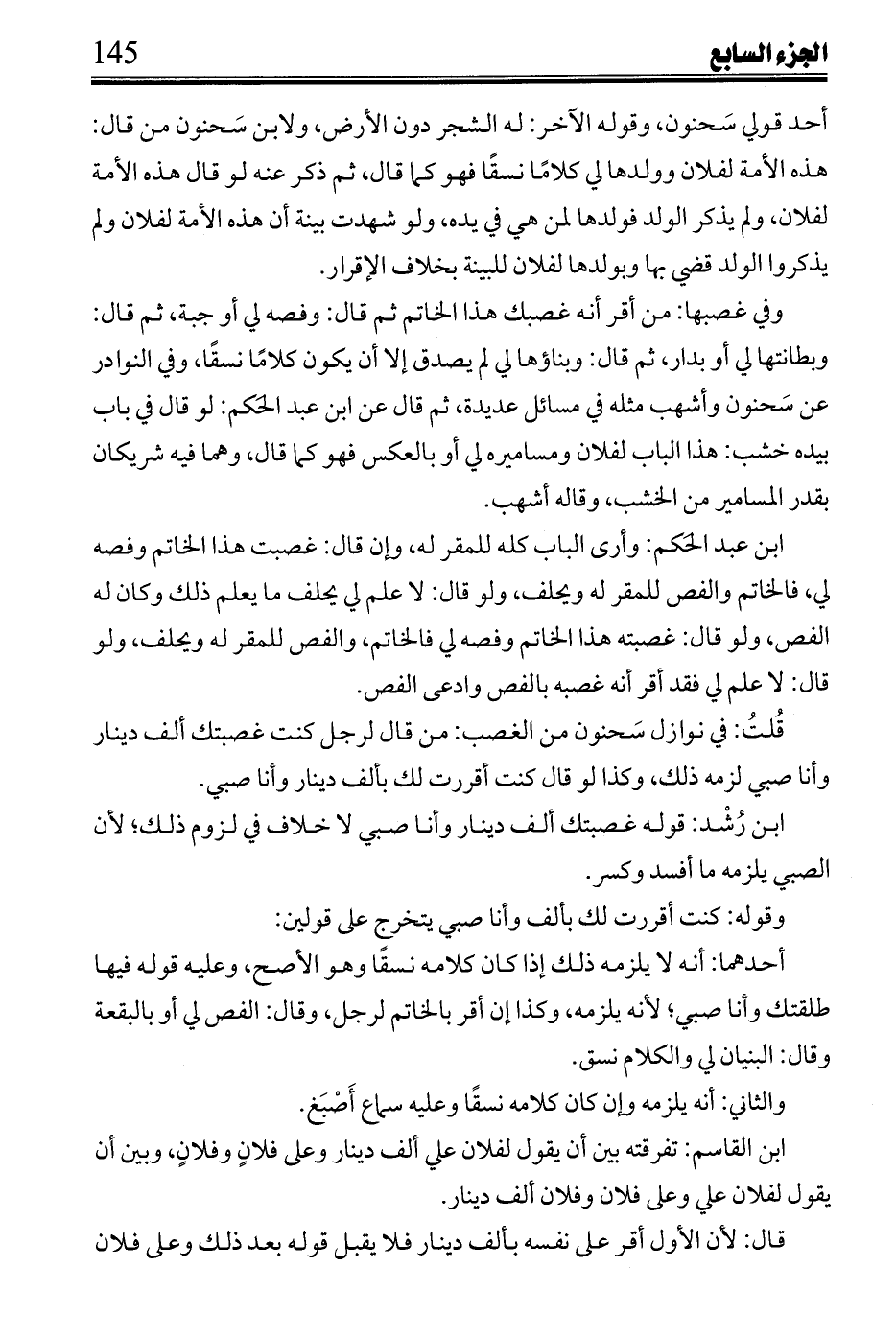 ابن القاسم: تفرقته بين أن يقول لغلام علي ألف دينار وعلى فلان وفلان، وبين أن يقول لفلان علي وعلى فلان وفلان ألف دينار.