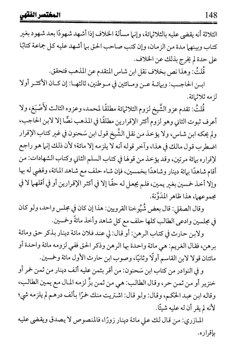 قُلتُ: تقدم عزو الشَّيخ لزوم الثلاثمائة مطلقاً لمحمد، وعزوة الثالث لأصبَ، ولا أعرف ثبوت الثاني وهو لزوم أكثر الإقرارين مطلقاً في المذهب نصاً إلا لابن الحاجب.