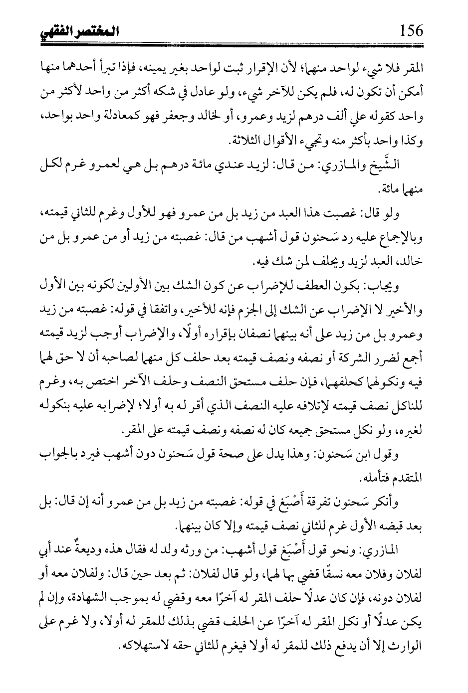ولو قال: غصبت هذا العبد من زيد بل من عمرو فهو للأول وغرم للثاني قيمته، وبالإجماع عليه رد سحنون قول أشهب من قال: غصبته من زيد أو من عمرو بل من خالد، العبد لزيد ويحلف لمن شك فيه.