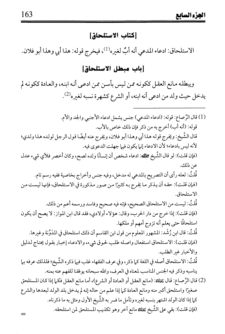 الاستلحاق: ادعاء المدعي أنه أبٌ لغيره، فيخرج قوله:: هذا أبي وهذا أبو فلان.