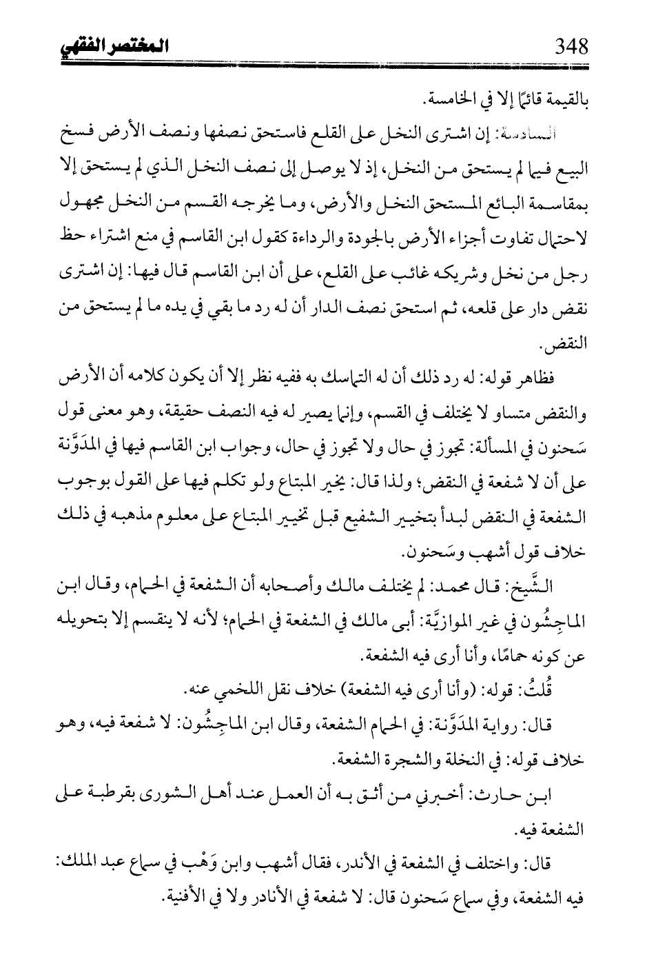 قُلتُ: وفي النوادر عن الموازيَّة: لو بيع من شيء من ذلك على حدته ففيه الشفعة ما دام الأصل لم يقسم.