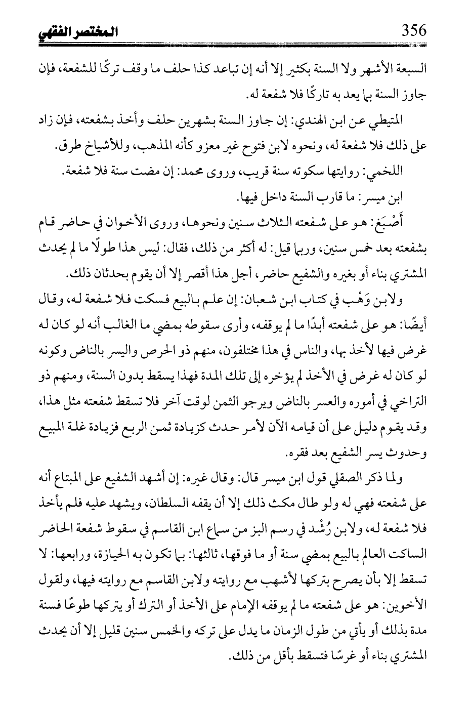 ابن عبد السلام: لو قيل: العالم في غيبته بالشفعة لا يوسع له في الأجل كان له وجه.