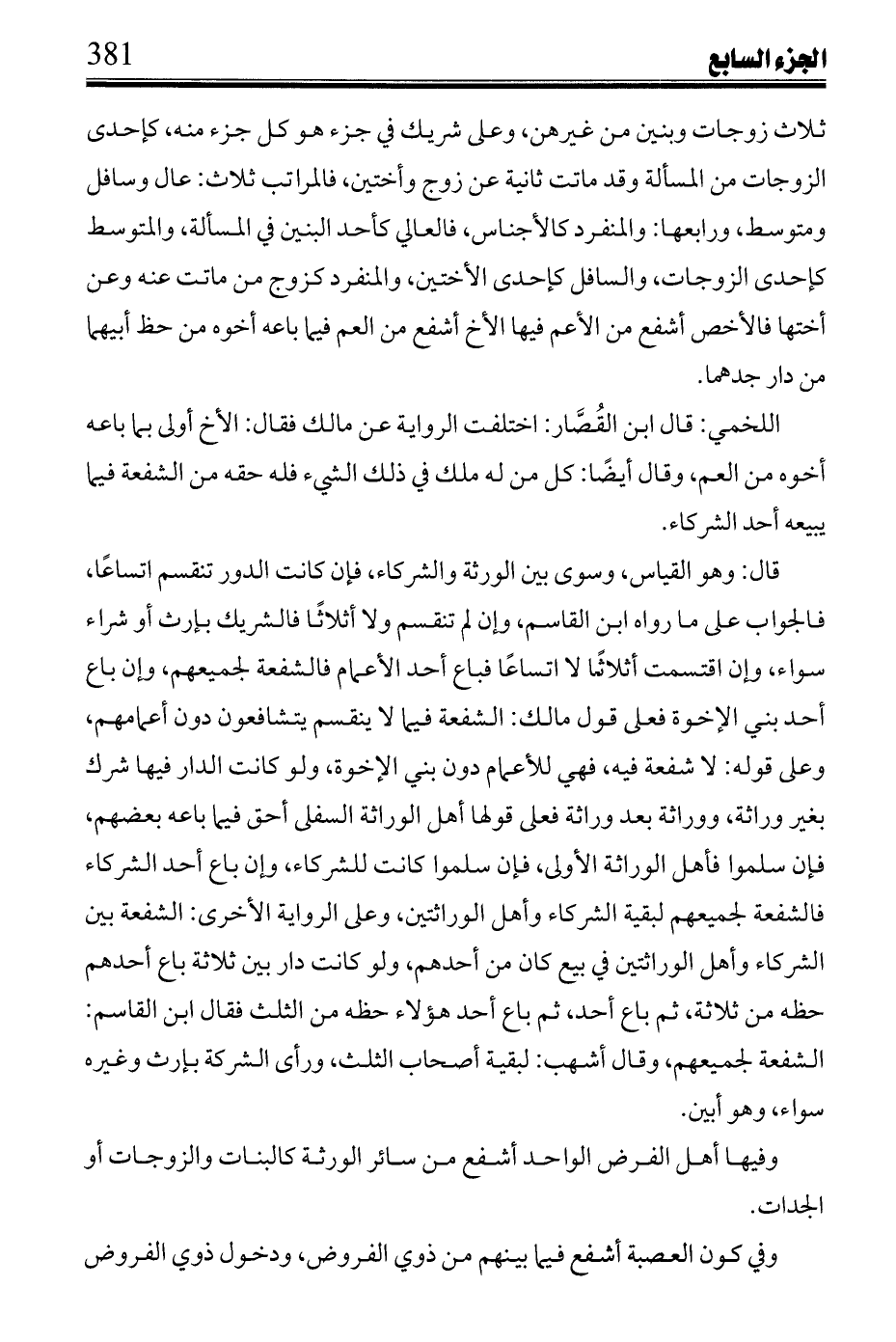 لأنه أثمن لهم، وقاله ابن القاسم، وقال عيسى: هذا أحب إلي فلم يراع نقص الثمن بين الورثة إذا أوفى بالدين، وهذا أصل في كل شريكين فيما لا ينقسم دعا أحدهم لبيع أنه يبيع حظه فقط، ولو كان بيع الجملة أثمن، وقاله ابن القاسم في كتاب القسم في المدونة فيما لا يحمل القسم أنه يقسم، وإن كان البخس في الثمن إذ يؤدي إلى فساد المقسوم، وفساده أعظم مضرة من نقص الثمن في بيع أحدهما حظه بانفراده.