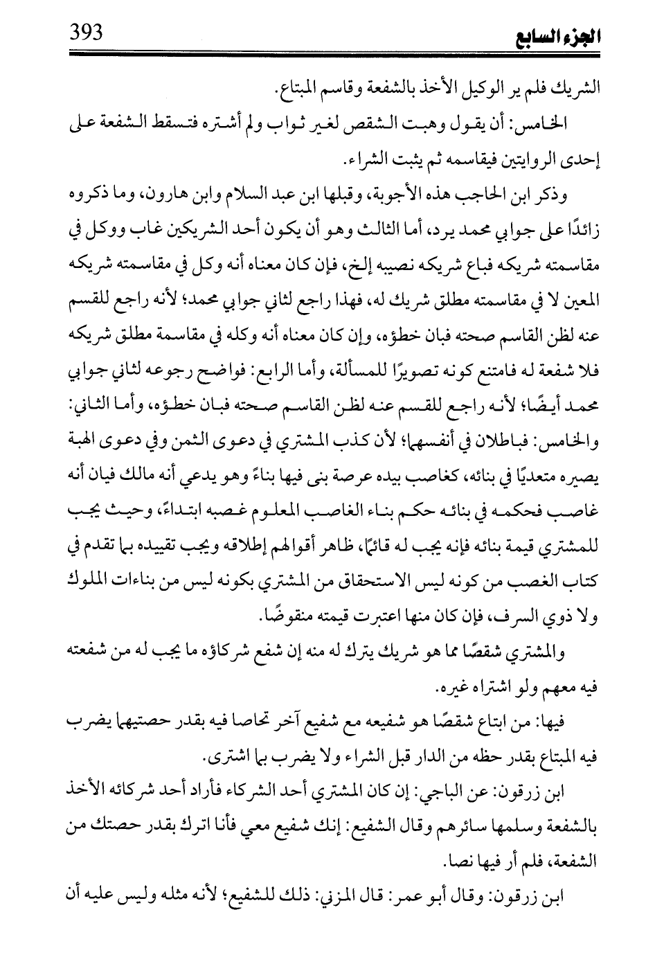 محمد: بل ذلك سواء فات قبل الأخذ بالشفعة أو بعدها يلزم الشفيع الأخذ بتلك
