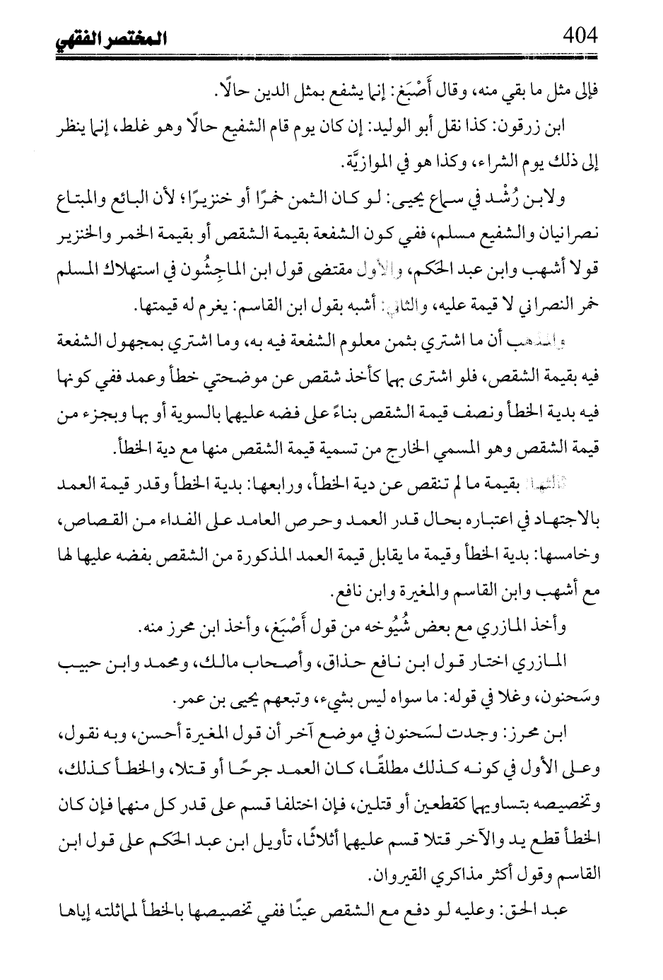 ابن محرز: هذا على اختياره قول ابن نافع، وعلى قول ابن القاسم: يشفع بجزء من قيمة العمد، وهو المسمى للخارج من تسمية قيمة الشقص منها مع دية الخطأ والخمسين المقدرة للعمد.