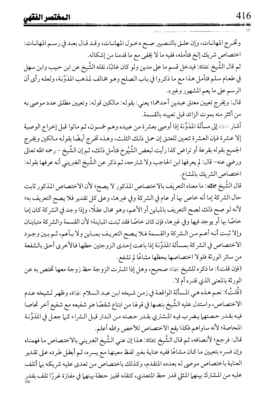 وهي أنواع، الأول: قسمة مهاناة بالنون وبالياء، وهي: اختصاص كل شريك بمشترك فيه عن شريكه فيه زمنا معينا من متحد أو متعدد تجوز في نفس منفعته لا في غلته.