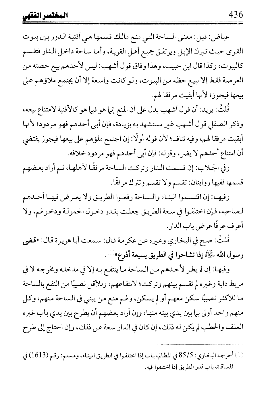 ابن رُشْد: بعد ذكره ما قدمناه: يريد: مالك: إن دعا إلي ذلك بعض الورثة؛ لأن معنى قوله: فقال: اقسموا كل عزق على حدته؛ أي: قال: ذلك بعضهم، إذ لو اتفقوا عليه لجاز، وقول مالك هذا كقول عيسى في الأرض الكريمة والدنية تقسم كل واحدة على حدة إن حملته، وفي جميعها، ثالثها: إن لم تحمل كل واحدة القسم لسماع عيسى مع ثاني وصاياها وقسمها وعيسى الباجي: أما البعد في الأرضين فقال ابن القاسم: إن تباعدت القرى اليوم واليومين قسمت كل قرية على حدة وإن تساوت رغبة الناس فيها.