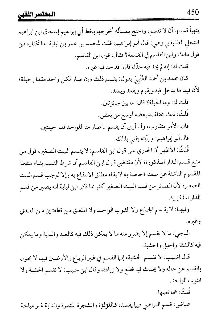 ابن حبيب سمعاً إن دعا أحد رجلين اشتريا رقيقاً إلى قسمها قسمت إن كانت تنقسم وإلا باعوها إلا ان يريدوا أن يتقاوموها.