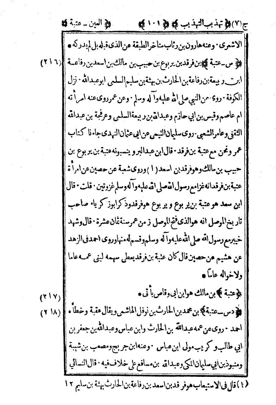 217- "عتبة" بن مالك هو بن أبي وقاص يأتي