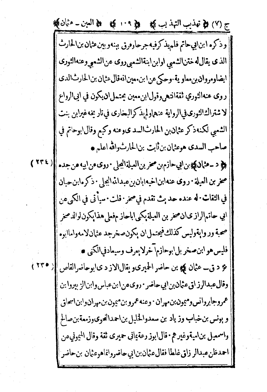 235- "د ق – عثمان" بن حاضر الحميري ويقال الأزدي أبو حاضر القاص وقال عبد الرزاق عثمان بن أبي حاضر روى عن بن عباس وابن الزبير وابن عمر وجابر وأنس وميمون بن مهران وعنه عمرو بن ميمون بن مهران وابن إسحاق ويونس بن خباب وزياد بن سعد والخليل بن أحمد النحوي وزمعة بن صالح وإسماعيل بن أمية وغيرهم قال أبو زرعة يماني حميري ثقة وقال الميموني عن أحمد ظن عبد الرزاق غلطا فقال عثمان بن أبي حاضر وإنما هو عثمان بن حاضر