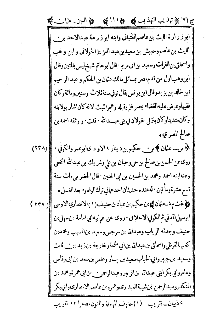 238- "س – عثمان" بن حكيم بن دينار1 الأودي أبو عمرو الكوفي روى عن الحسن بن صالح بن حي وحبان بن علي وشريك بن عبد الله النخعي وعنه ابنه أحمد ومحمد بن الحسين بن أبي الحنين قال الحضرمي مات سنة تسع عشرة ومائتين له عنده حديثان أحدهما في ترك الوضوء بعد الغسل