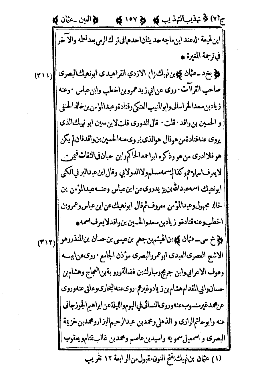 1 عثمان بن نهيك بفتح النون مقبول من الرابعة 12 تقريب