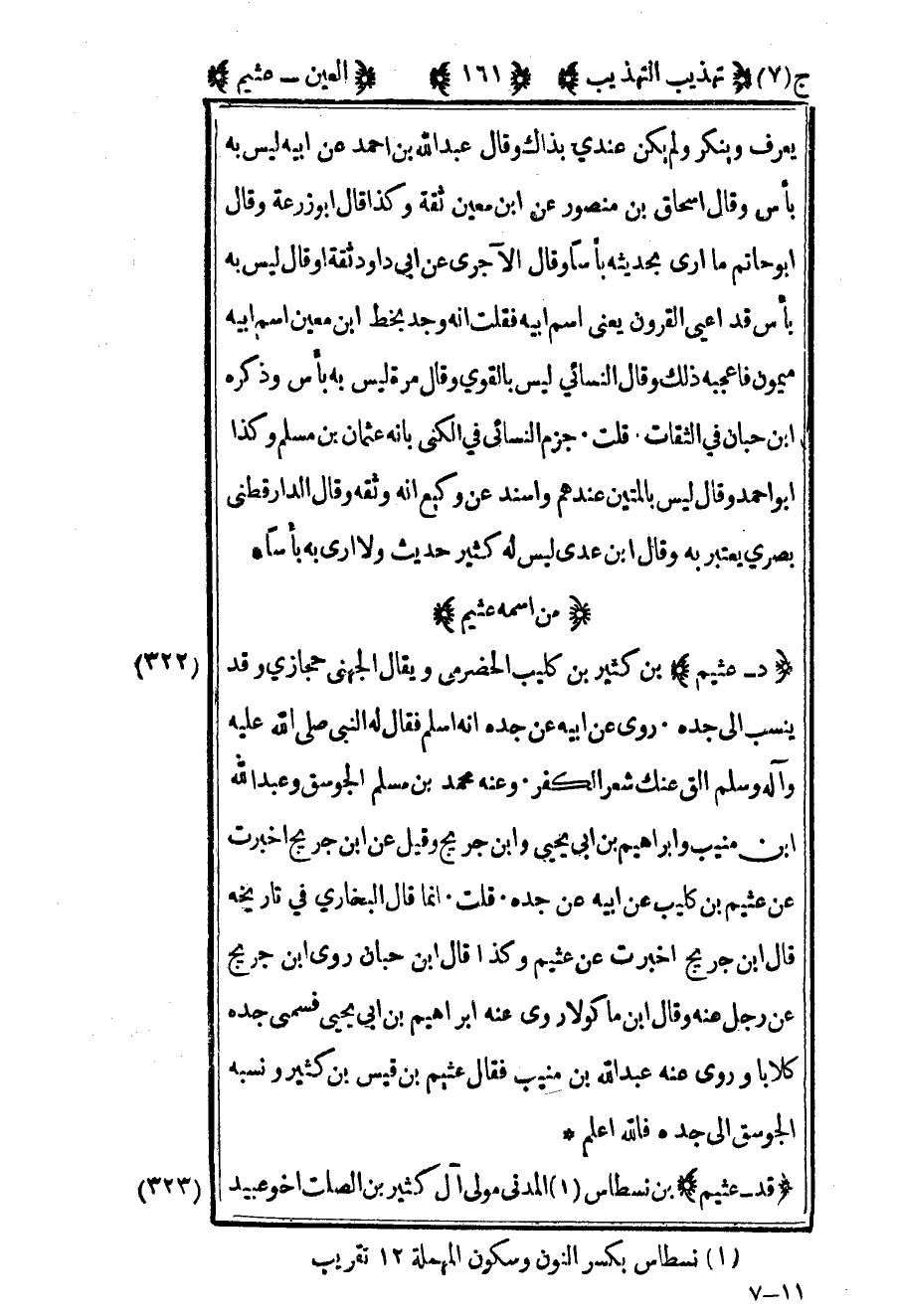 223- "د – عثيم" بن كثير بن كليب الحضرمي ويقال الجهني حجازي وقد ينسب إلى جده روى عن أبيه عن جده أنه أسلم فقال له النبي صلى الله عليه وسلم ألق عنك شعر الكفر وعنه محمد بن مسلم الجوسق وعبد الله بن منيب وإبراهيم بن أبي يحيى وابن جريج وقيل عن بن جريج أخبرت عن عثيم بن كليب عن أبيه عن جده قلت إنما قال البخاري في تاريخه قال بن جريج أخبرت عن عثيم وكذا قال بن حبان روى بن جريج عن رجل عنه وقال بن ماكولا روى عنه إبراهيم بن أبي يحيى فسمى جده كلابا وروى عنه عبد الله بن منيب فقال عثيم بن قيس بن كثير ونسبه الجوسق إلى جده فالله أعلم