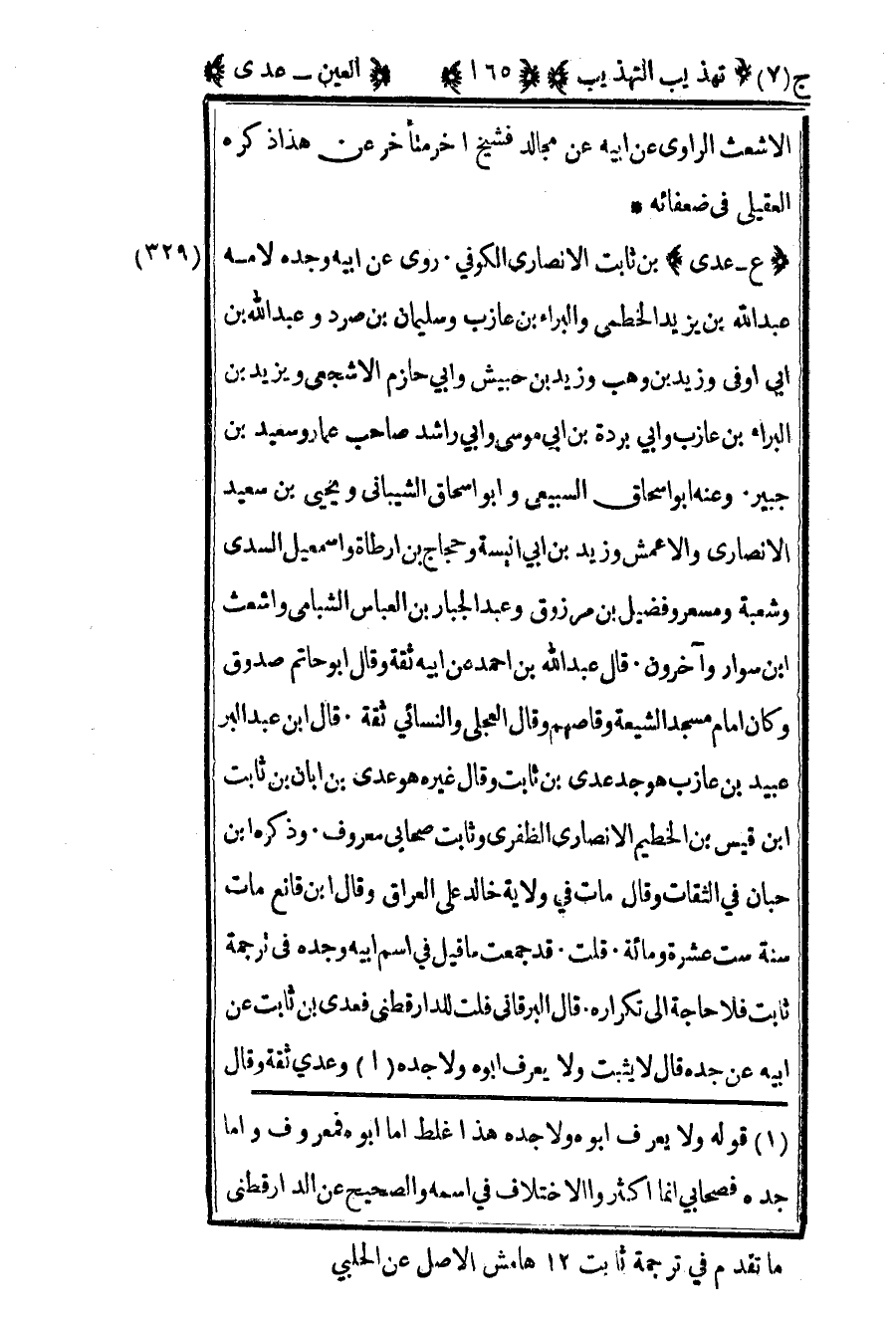 1 قوله ولا يعرف ابوه ولا جده هذا غلط أما أبوه فمعروف وأما جده فصحابي إنما أكثروا الإختلاف في اسمه والصحيح عن الدارقطني ماتقدم في ترجمة ثابت 12 هامش الأصل عن الحلبي
