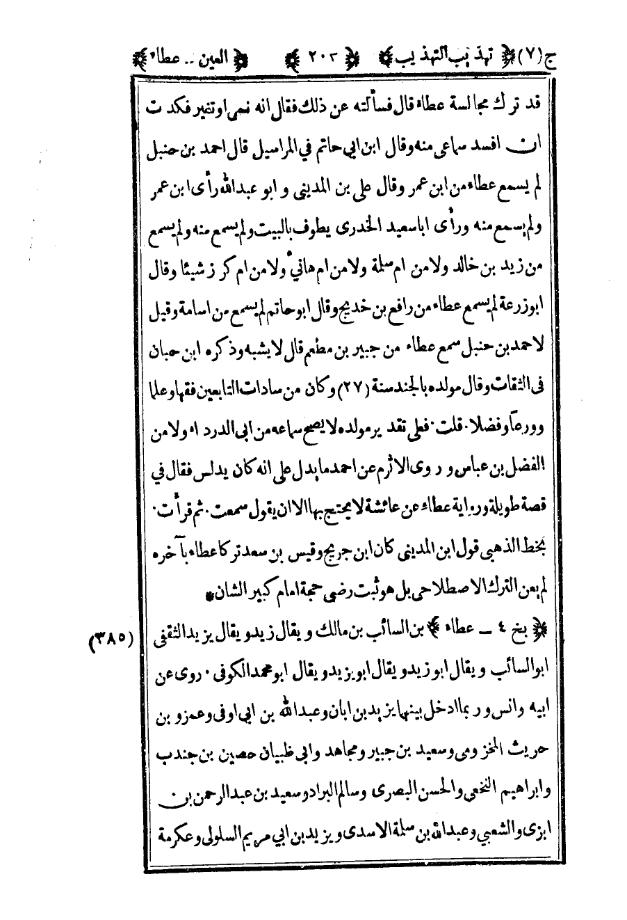 386- "بخ 4 – عطاء" بن السائب بن مالك ويقال زيد ويقال يزيد الثقفي أبو السائب ويقال أبو زيد ويقال أبو يزيد ويقال أبو محمد الكوفي روى عن أبيه وأنس وربما أدخل بينهما يزيد بن أبان وعبد الله بن أبي أوفى وعمرو بن حريث المخزومي وسعيد بن جبير ومجاهد وأبي ظبيان حصين بن جندب وإبراهيم النخعي والحسن البصري وسالم البراد وسعيد بن عبد الرحمن بن أبزي والشعبي وعبد الله بن سلمة الأسدي ويزيد بن أبي مريم السلولي وعكرمة